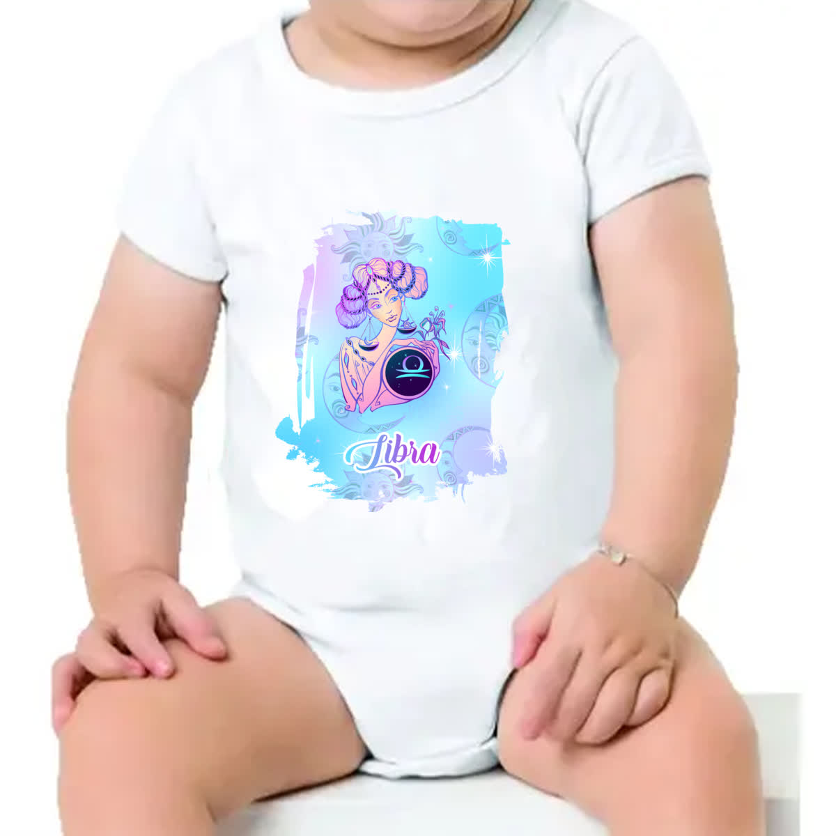 Body infantil Libra fundo zodiacal