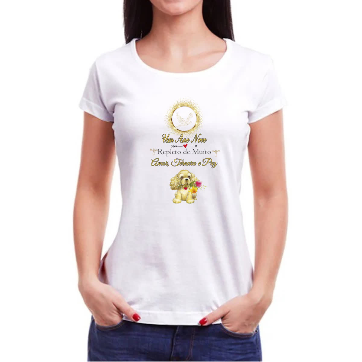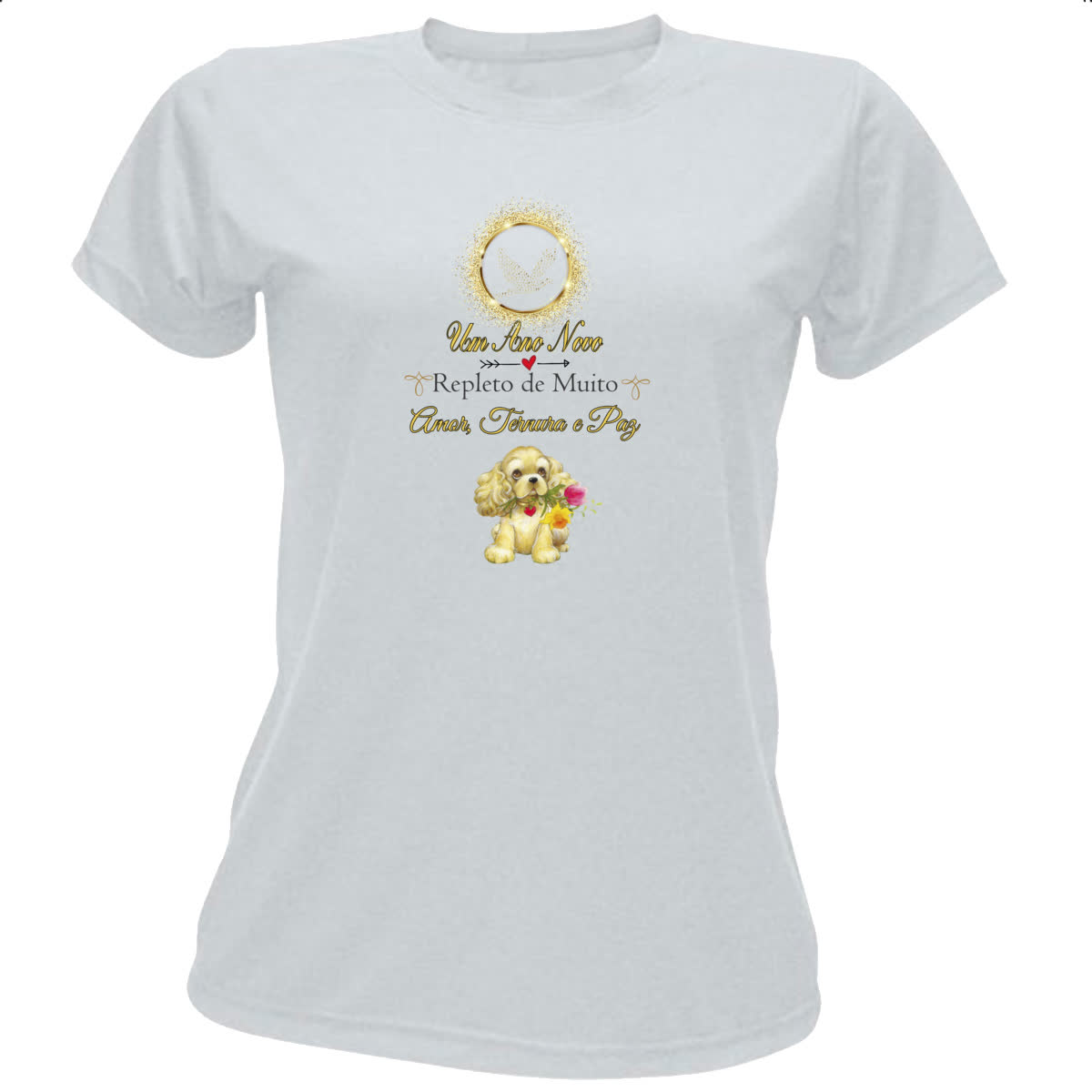 Camiseta Baby Look Ano Novo Cachorro Fofo