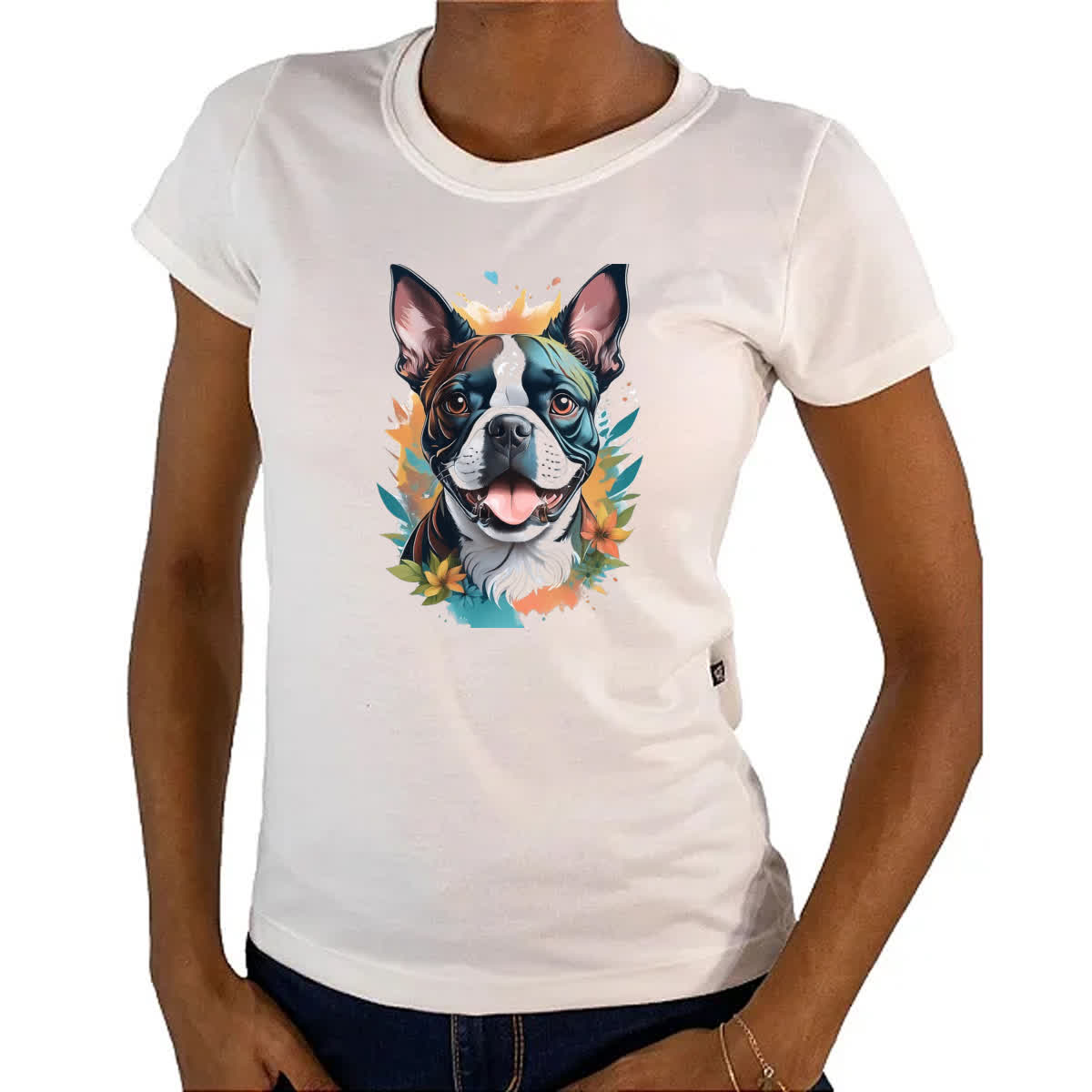 Camiseta Baby Look Boston Terrier Watercolor Arte