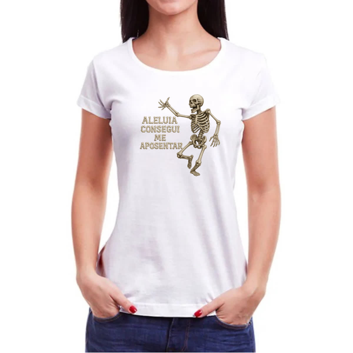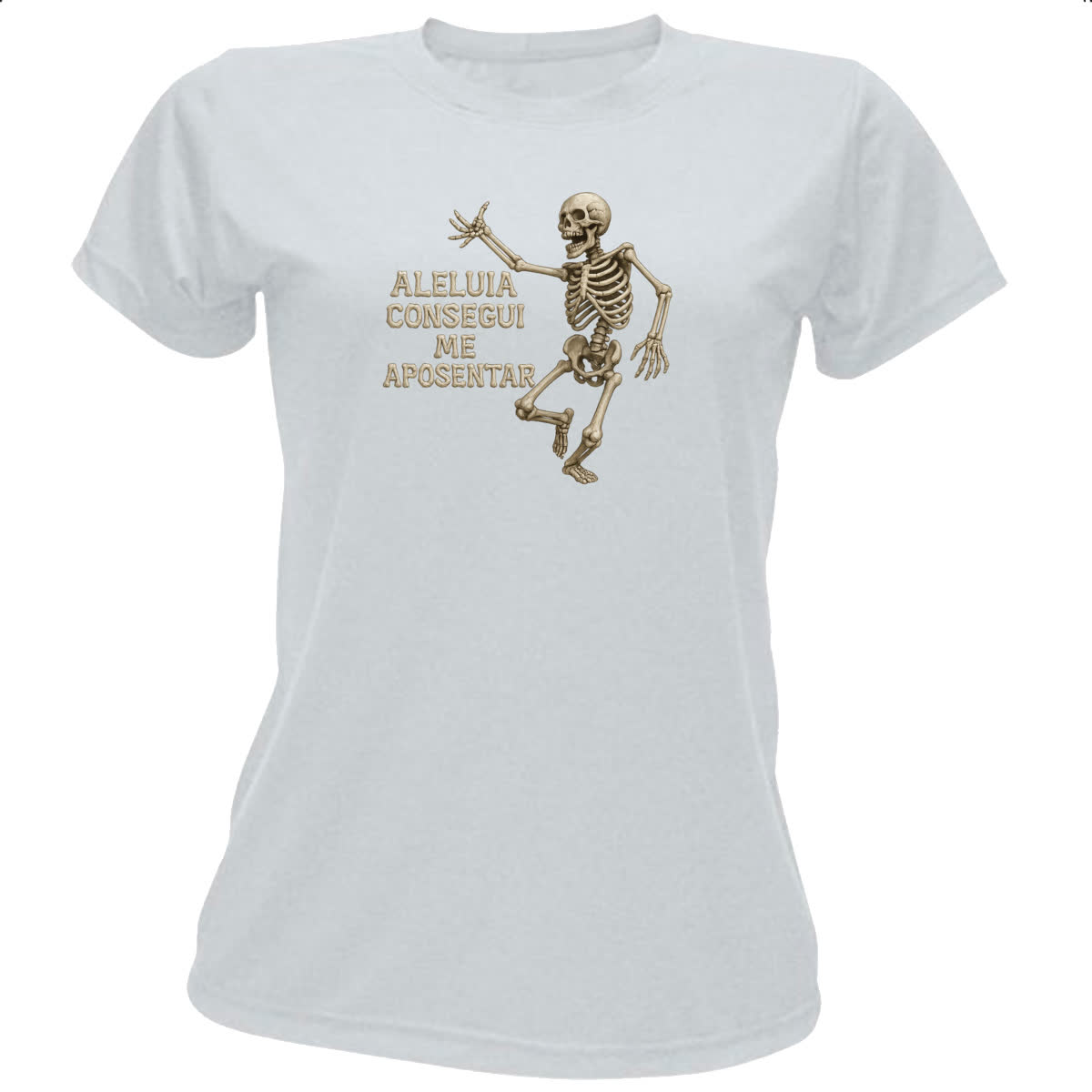 Camiseta Baby Look Caveira Aleluia Consegui me aposentar