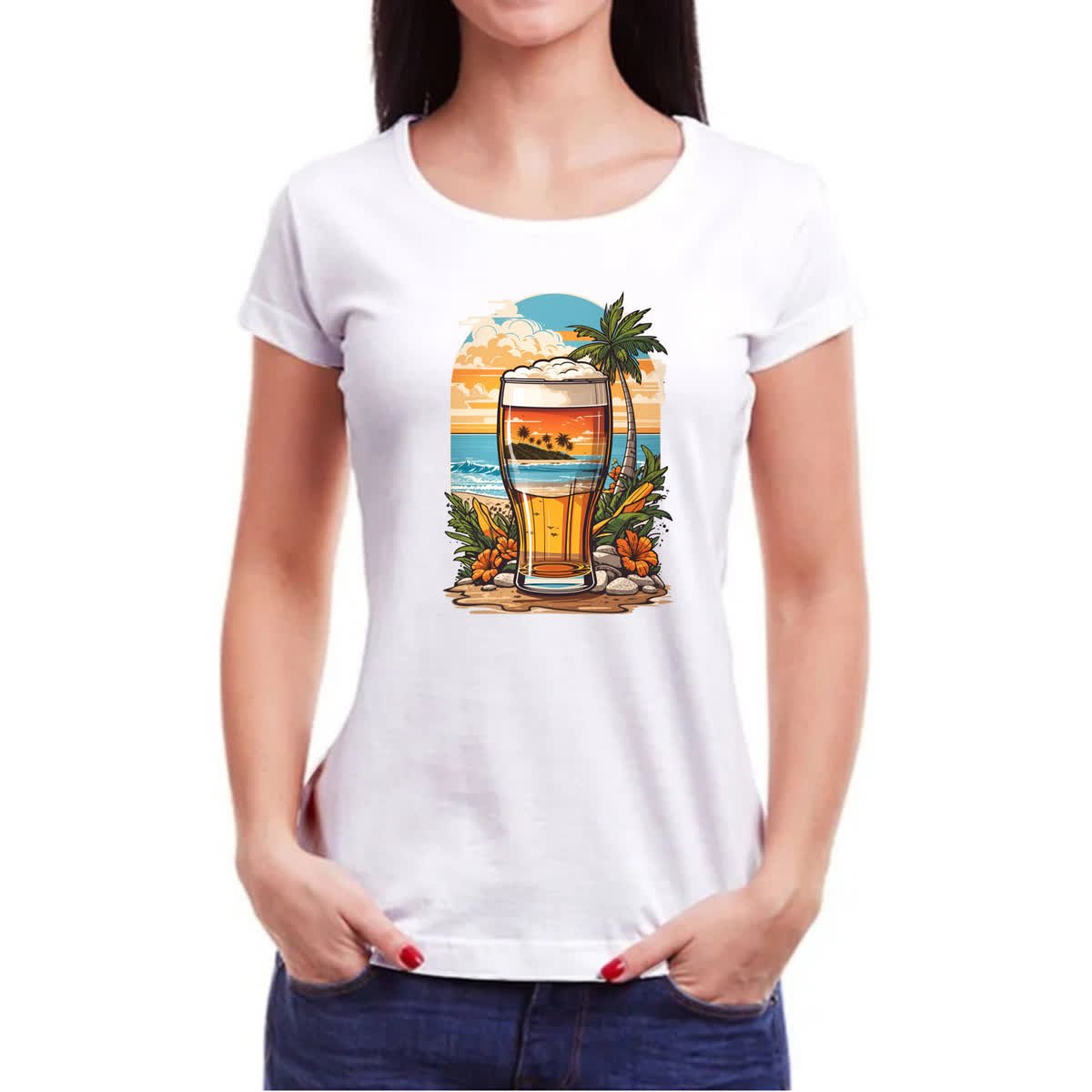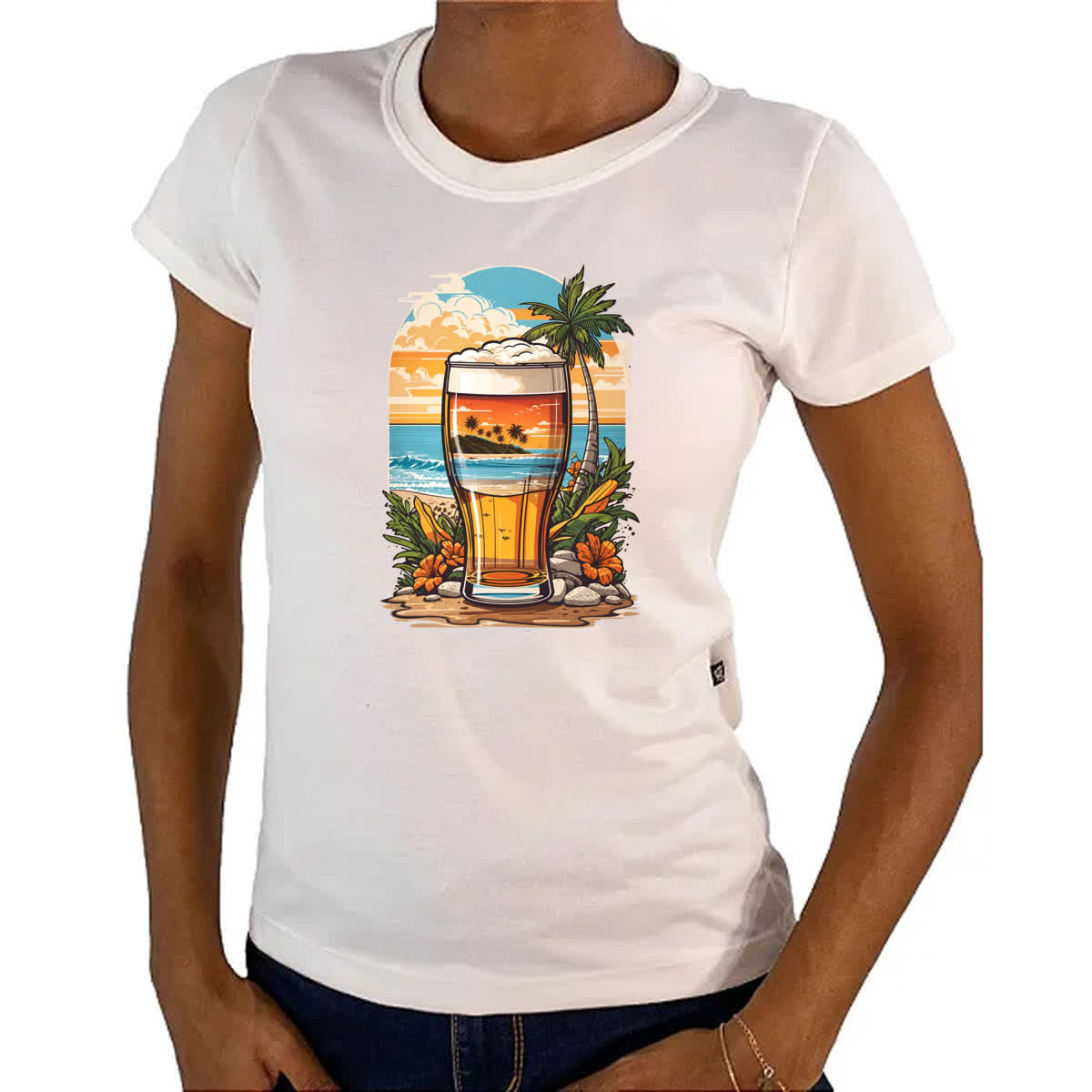 Camiseta Baby Look Copo de Cerveja Sunset