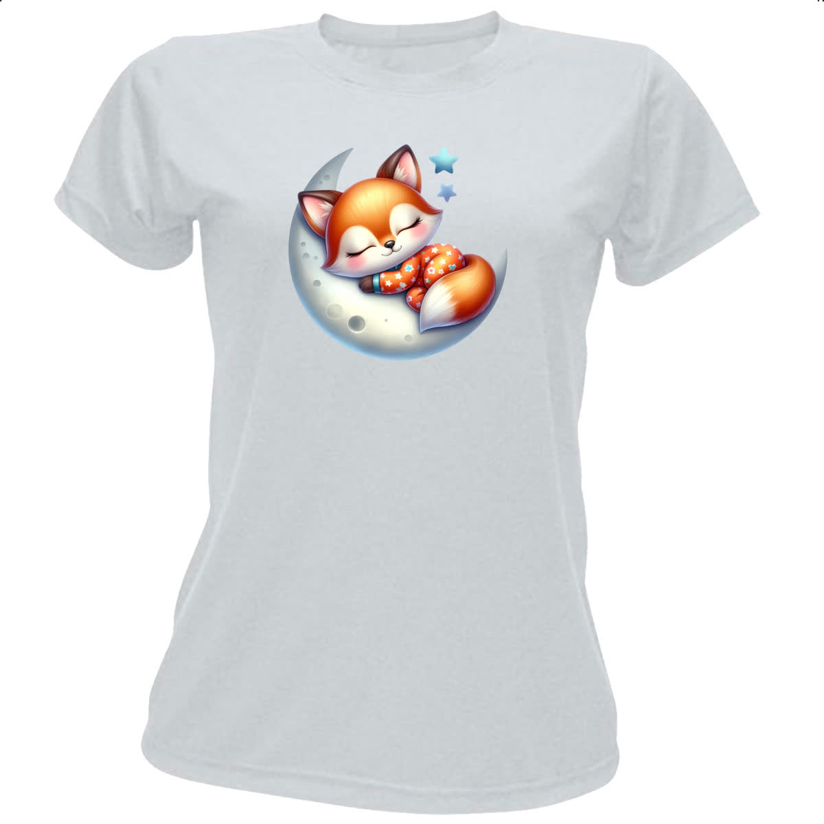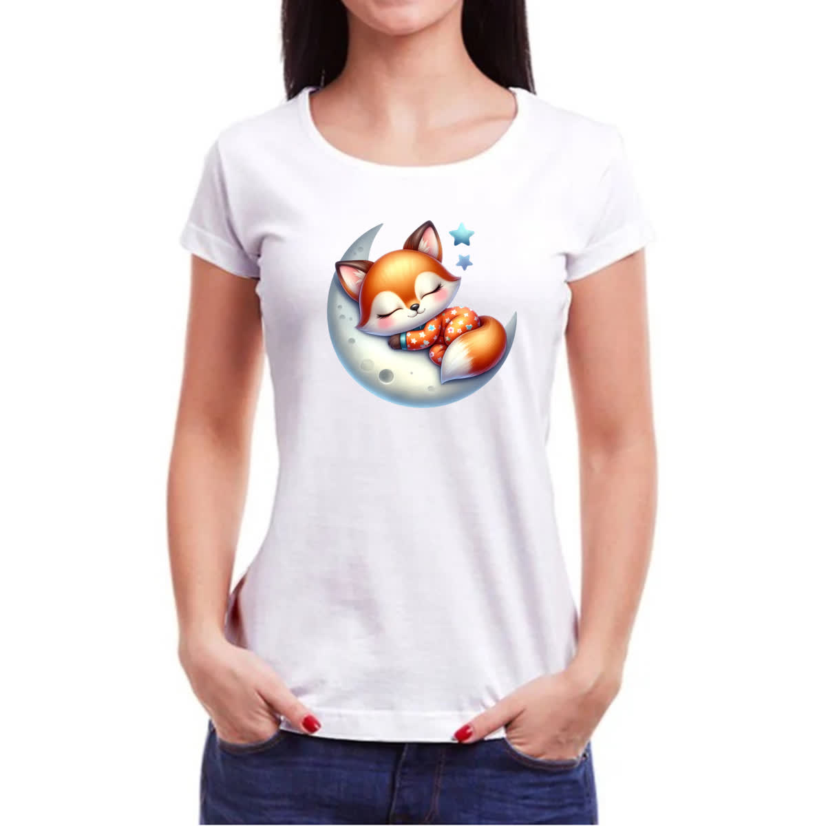 Camiseta Baby Look Cute Raposa dormindo na Lua
