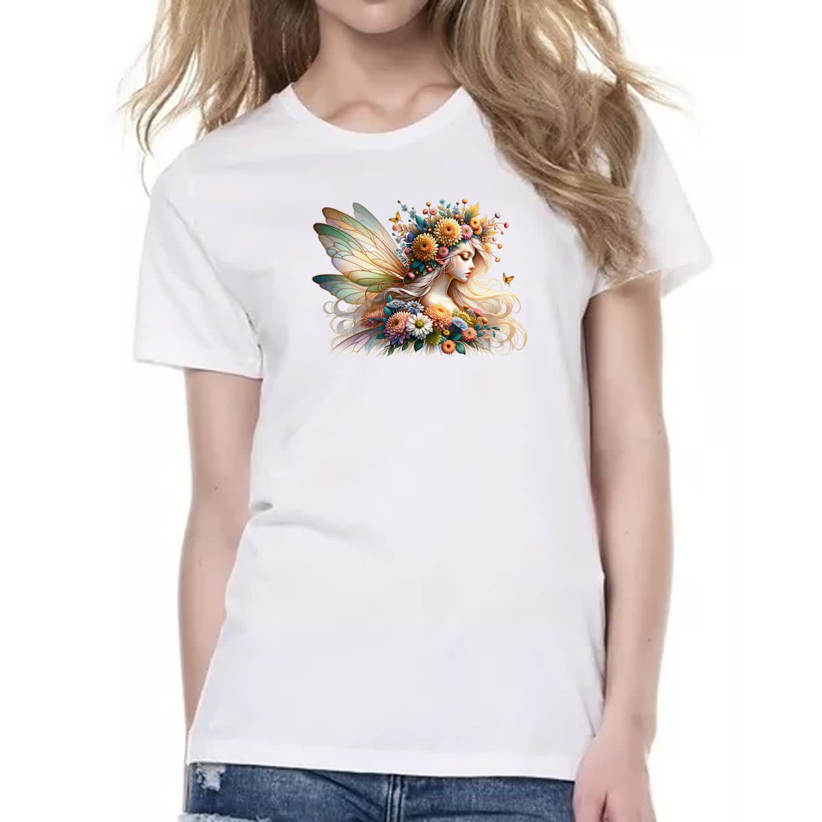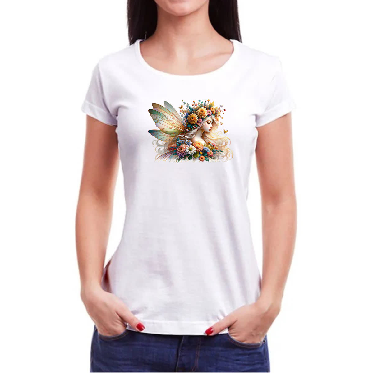 Camiseta Baby Look Fada das flores