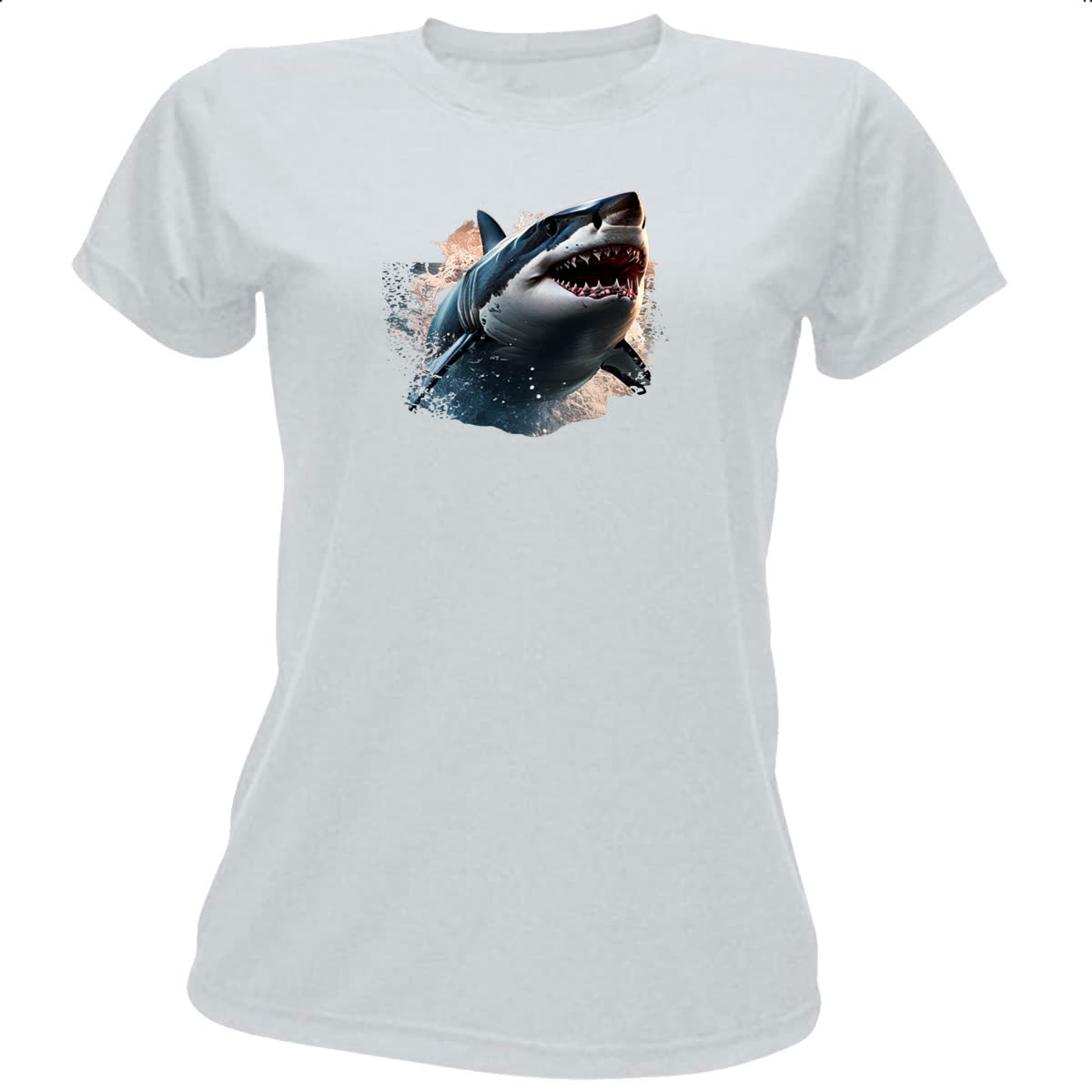 Camiseta Baby Look Grande Tubarao Branco