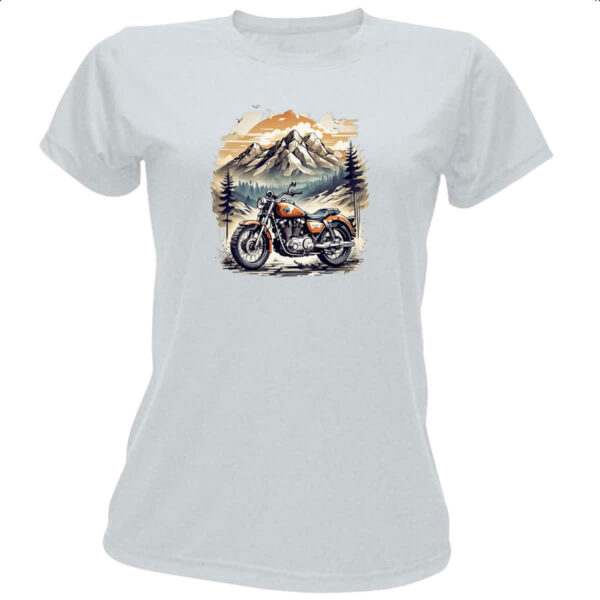 Camiseta Baby Look Motocicleta vintage montanhas