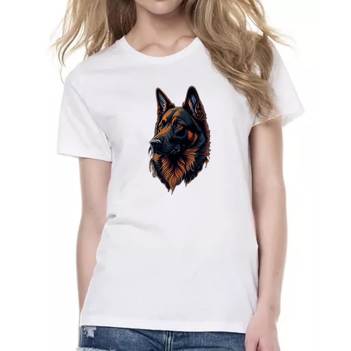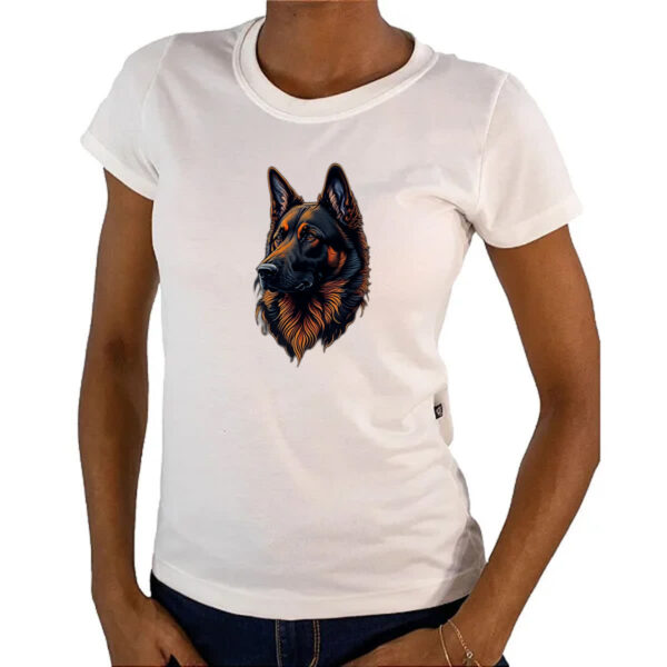 Camiseta Baby Look Pastor Alemao Preto Laranja Face