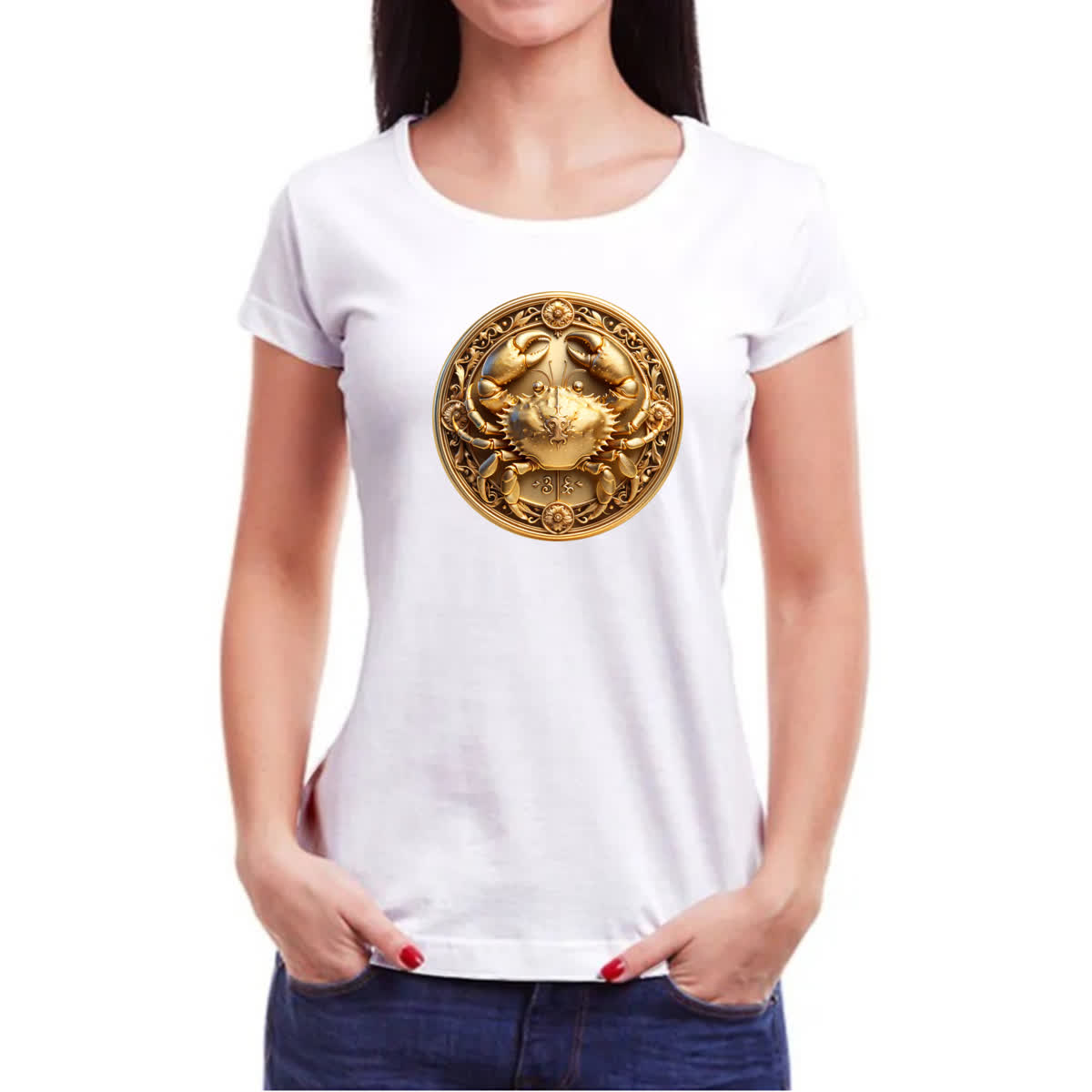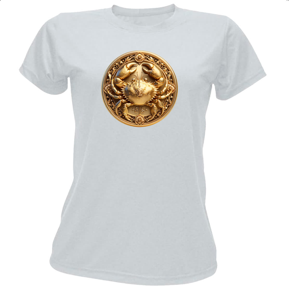Camiseta Baby Look Signo de Cancer moeda de ouro