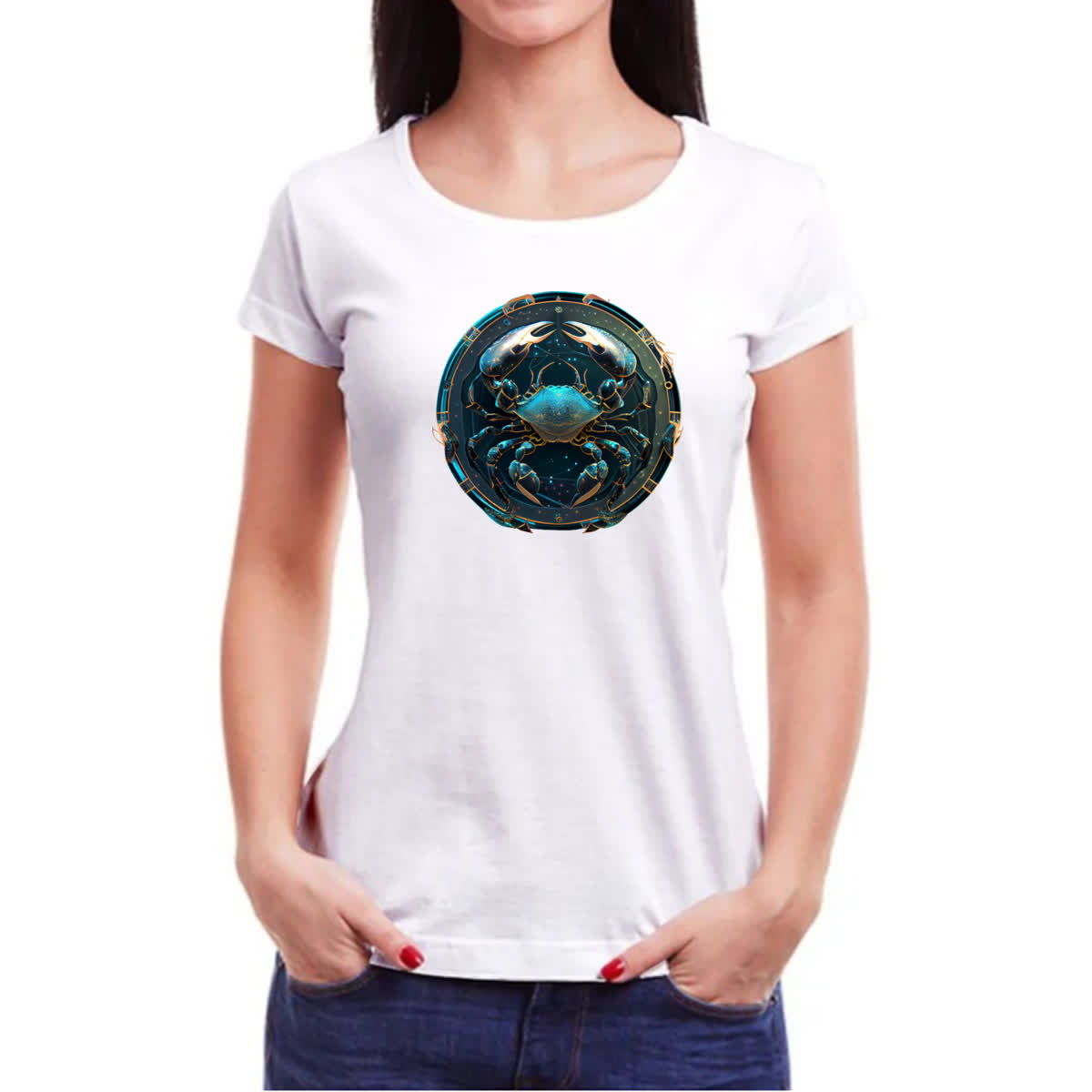 Camiseta Baby Look Signo de Cancer placa de luxo