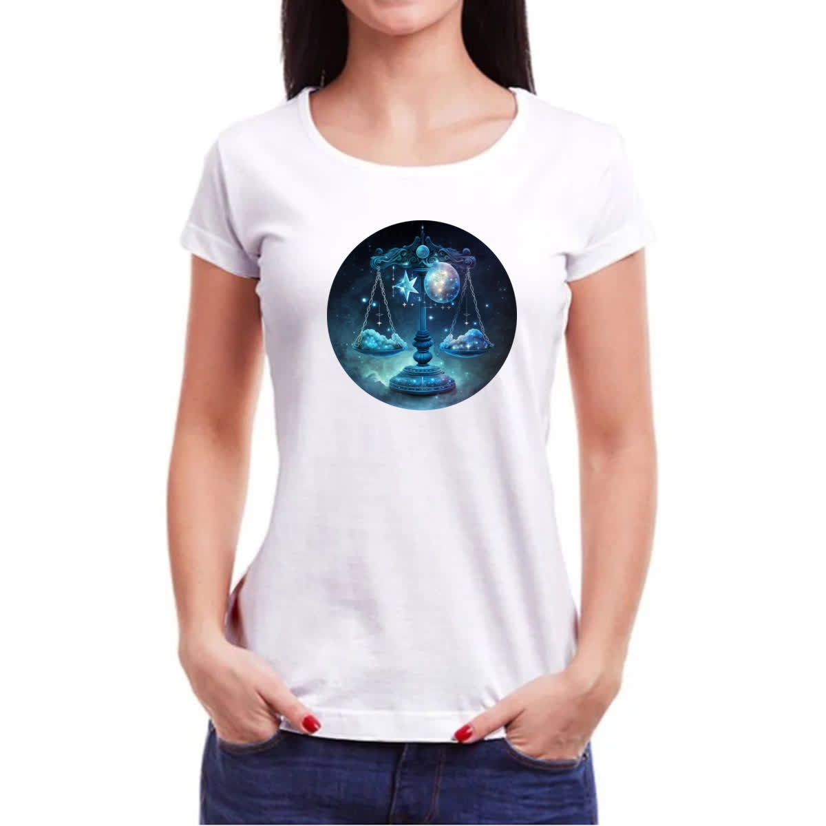 Camiseta Baby Look Signo de Libra placa de luxo
