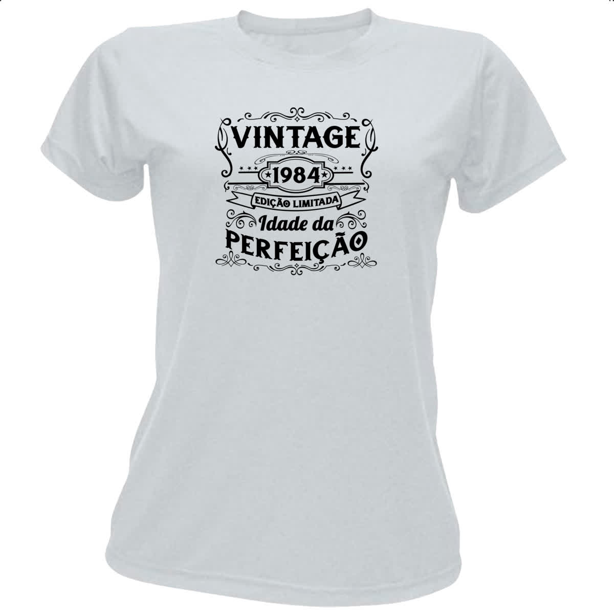 Camiseta Baby Look Vintage idade perfeicao 1984