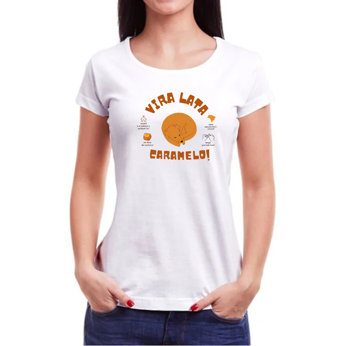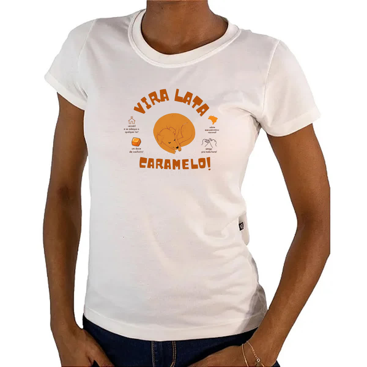 – Nossas camisetas são produzidas com tecido de 100% Poliéster.