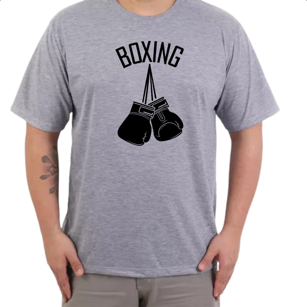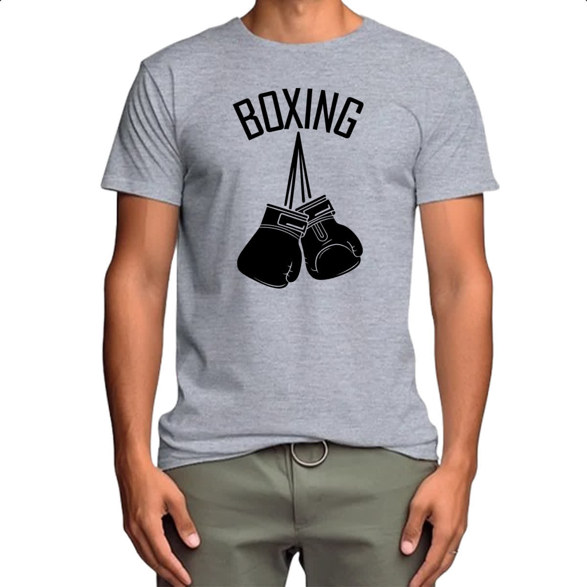 Camiseta Cinza Boxing luvas penduradas
