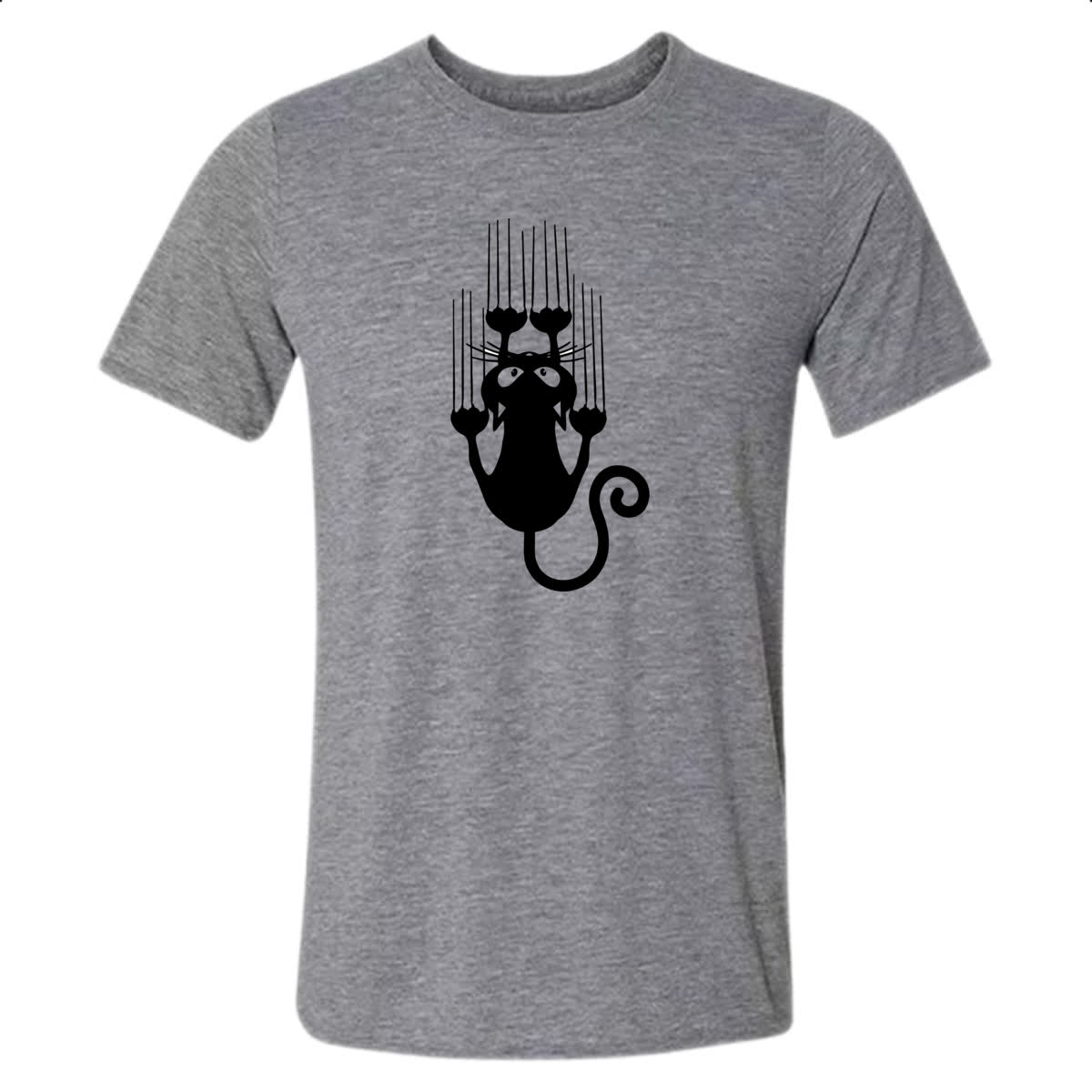 Camiseta Cinza Gato escorregando pela camiseta