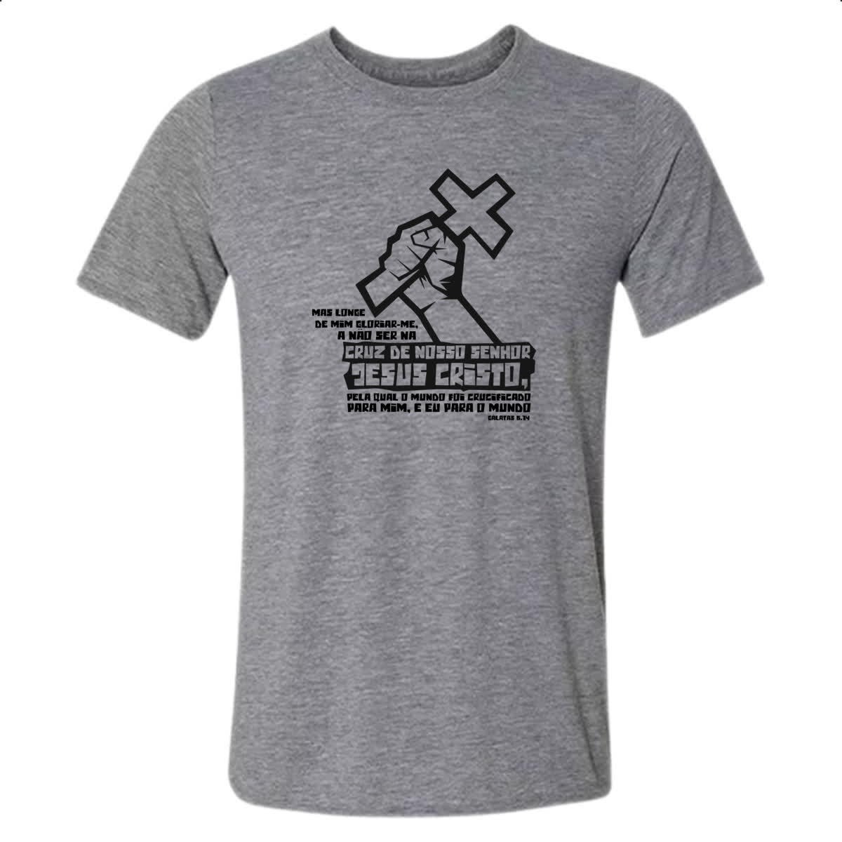 Camiseta Cinza Gospel Galatas 6.14 Mao