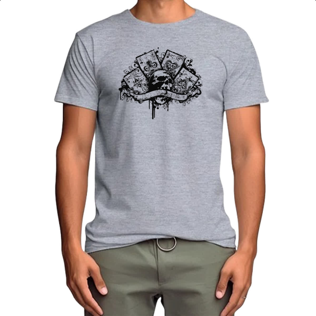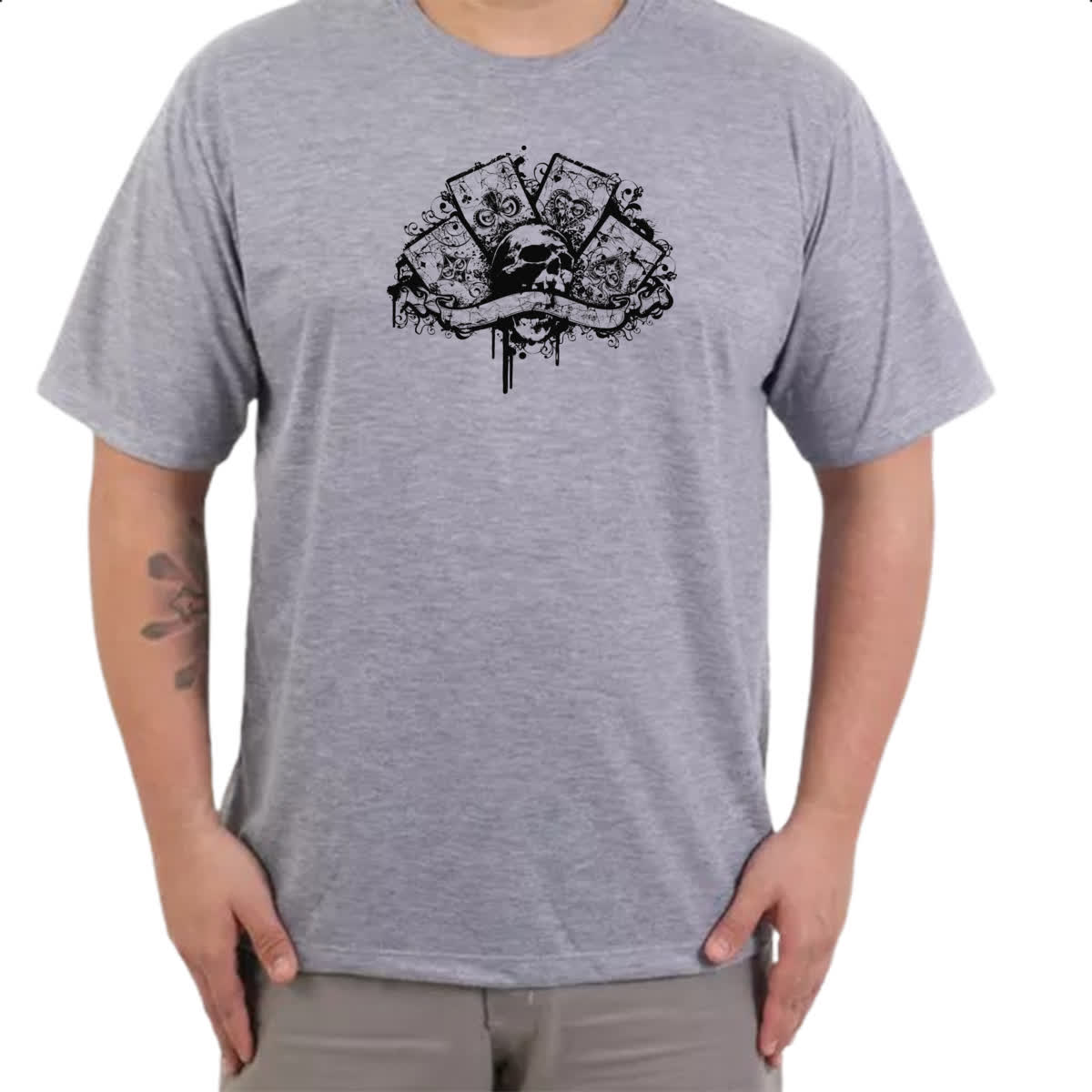 Camiseta Cinza Quadra de ases caveira