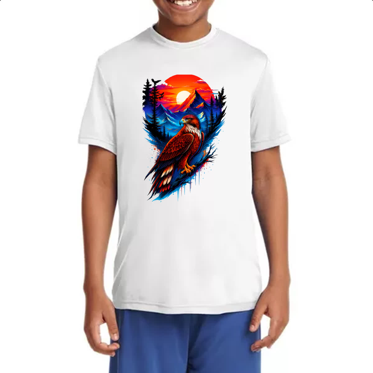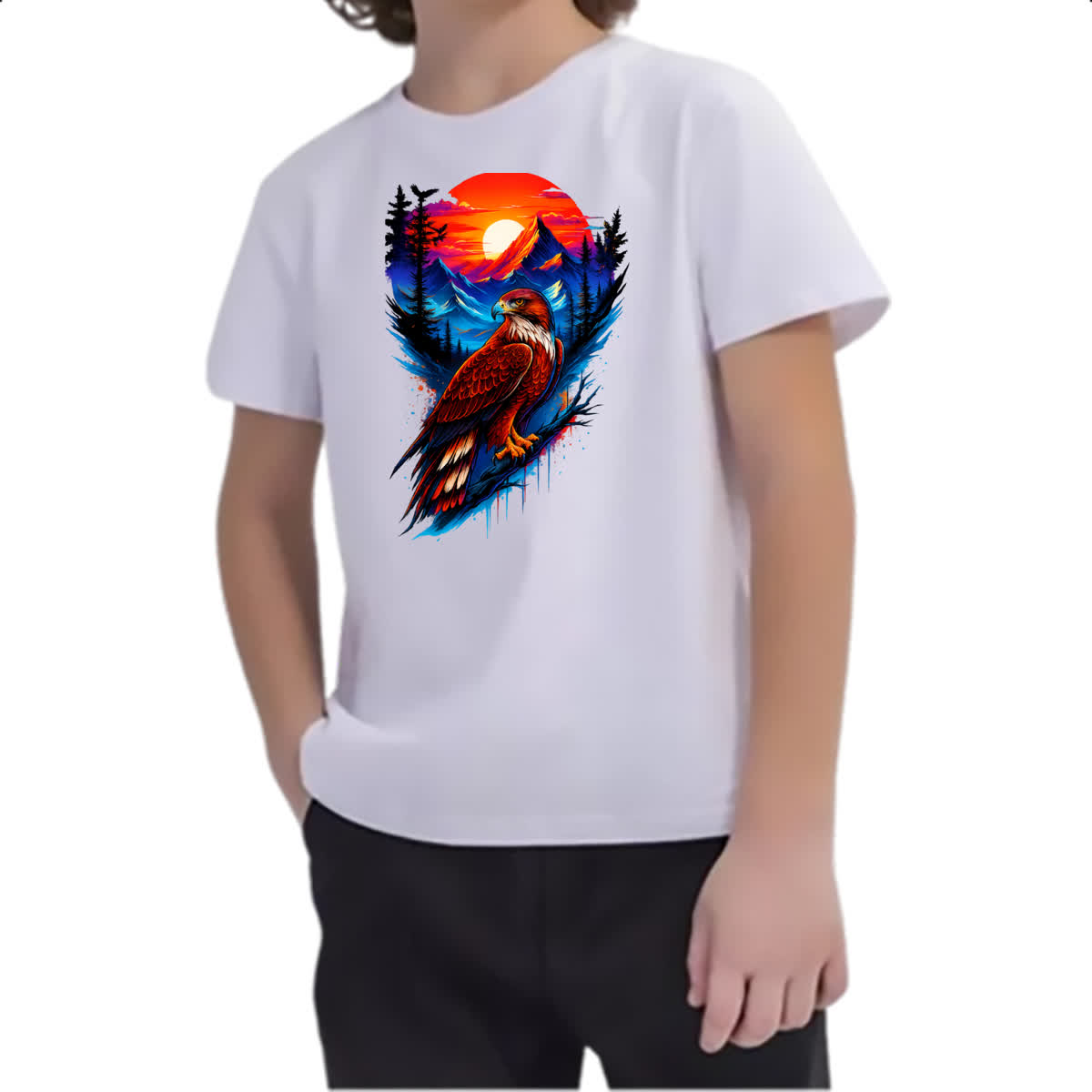 Camiseta Infanto Juvenil Aguia montanhas landscape art
