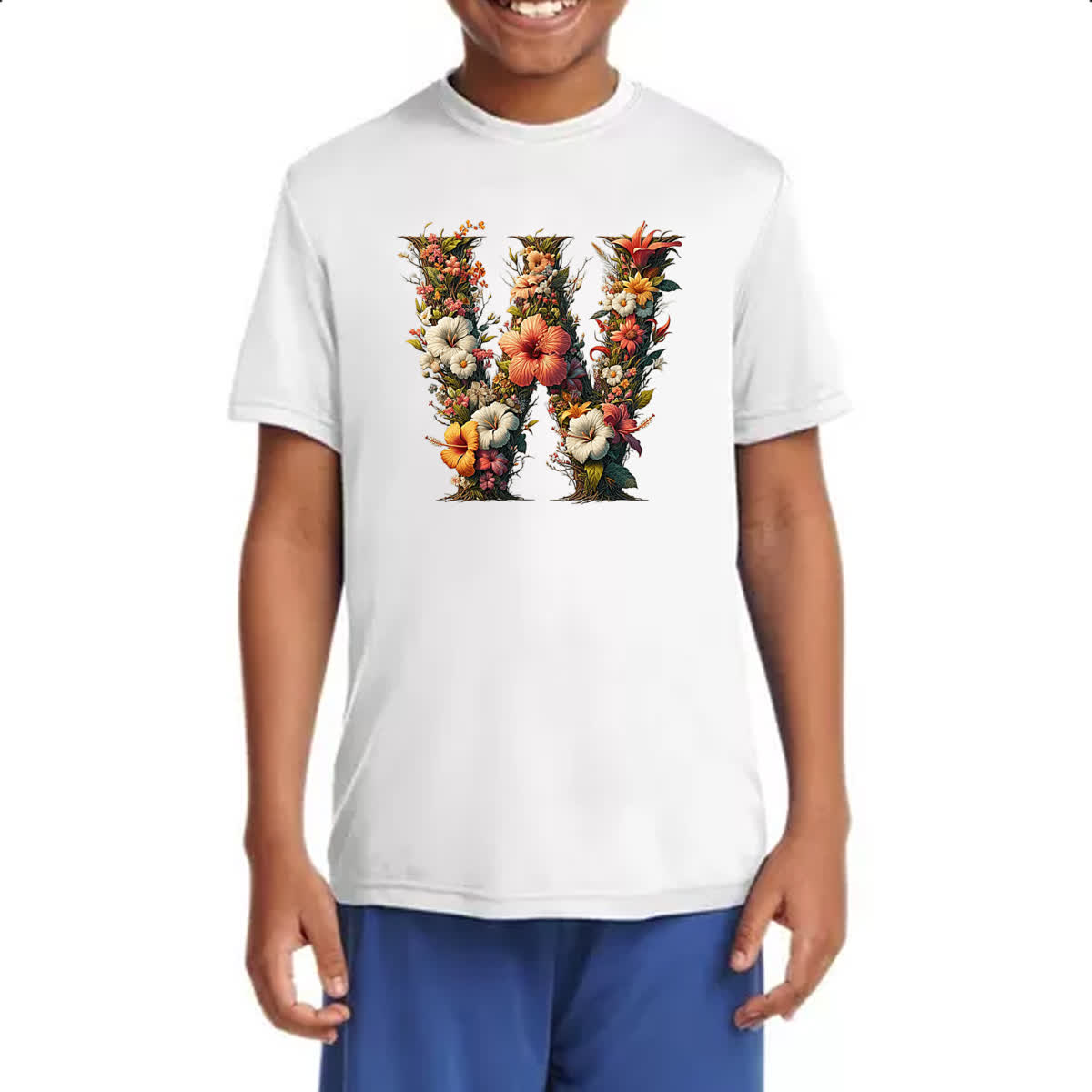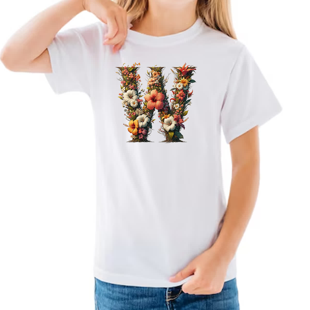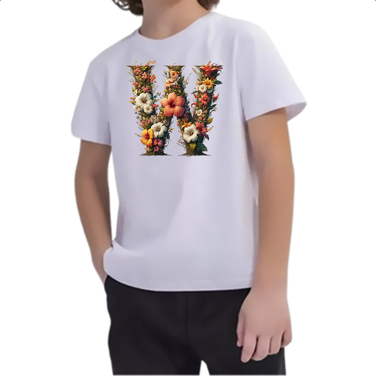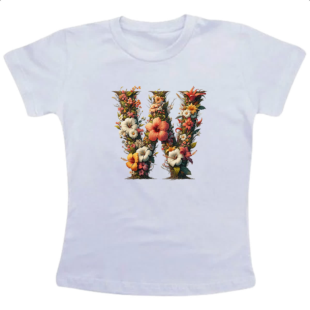 Camiseta Infanto Juvenil Alfabeto Floral Letra W