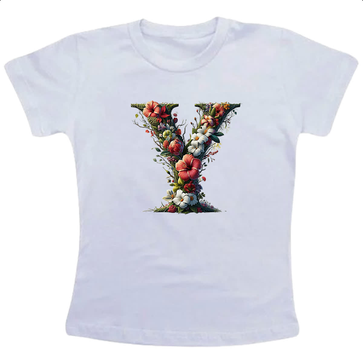 Camiseta Infanto Juvenil Alfabeto Floral Letra Y