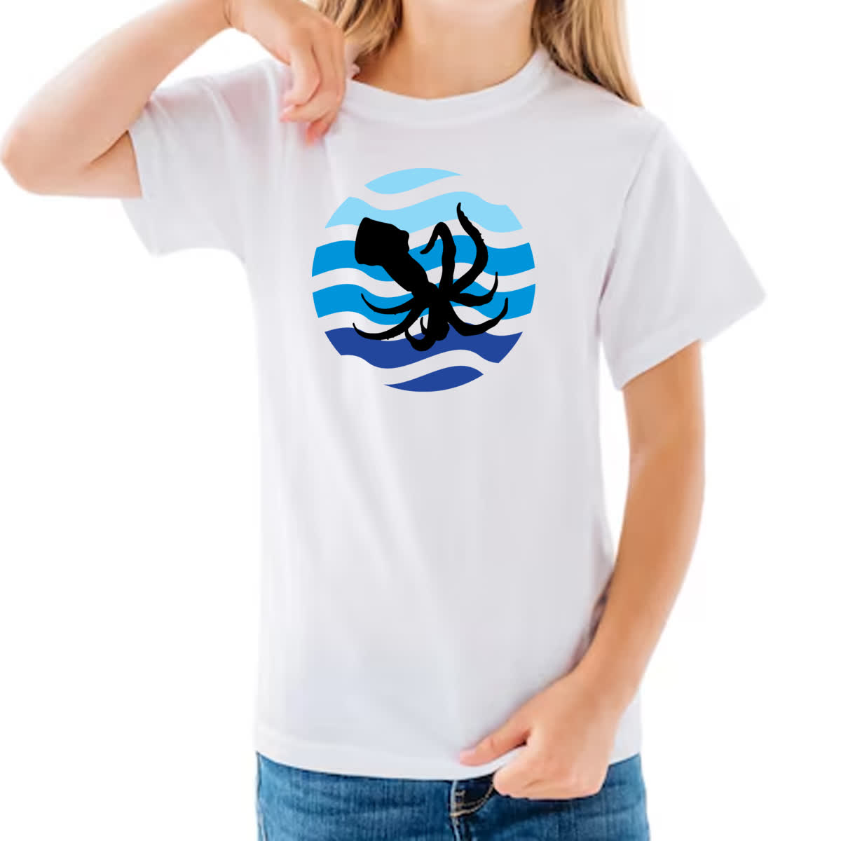Camiseta Infanto Juvenil Animais marinhos lula silhueta sunset