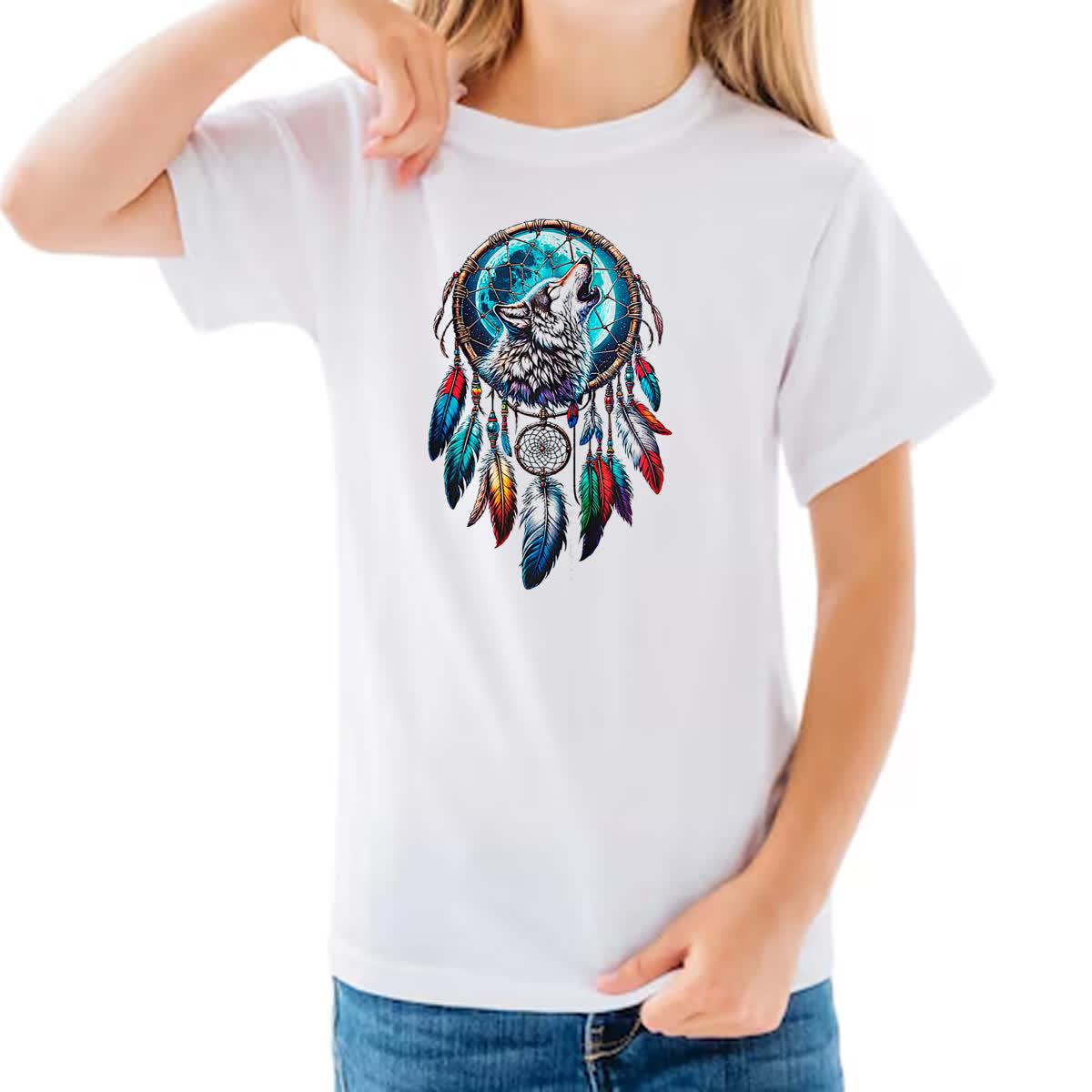 Camiseta Infanto Juvenil Apanhador de sonhos lobo uivando