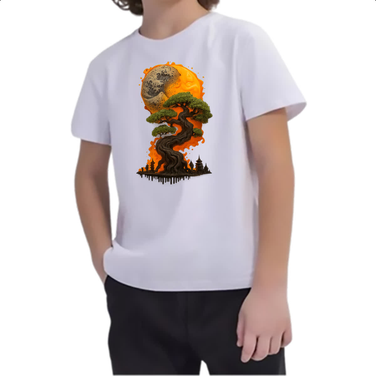 Camiseta Infanto Juvenil Bonzai sunset fire art