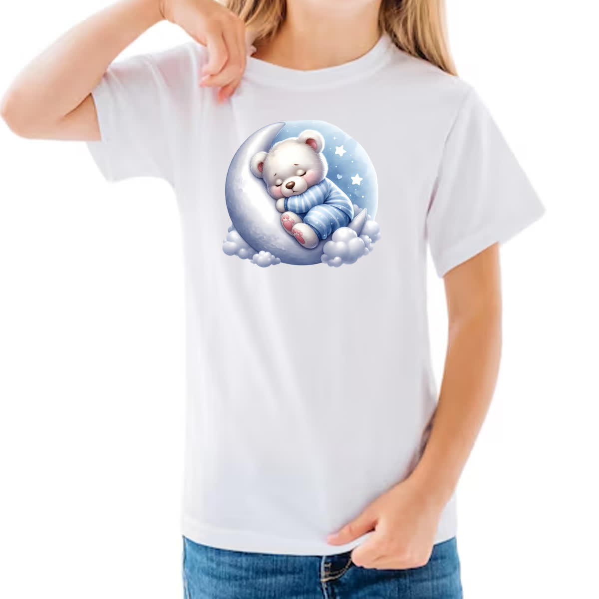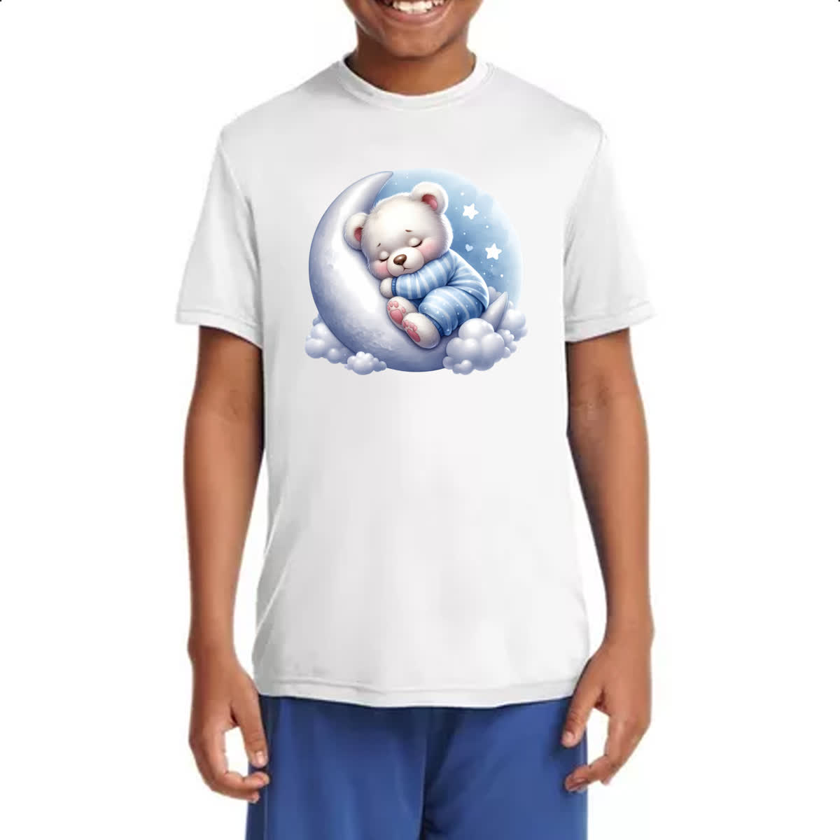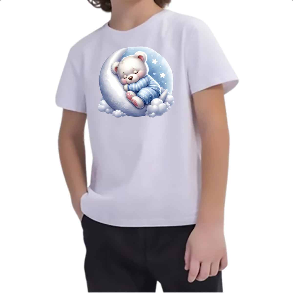 Camiseta Infanto Juvenil Cute Urso Polar dormindo na Lua
