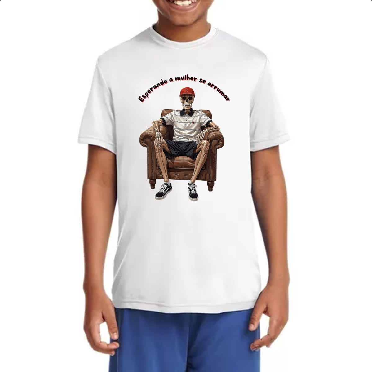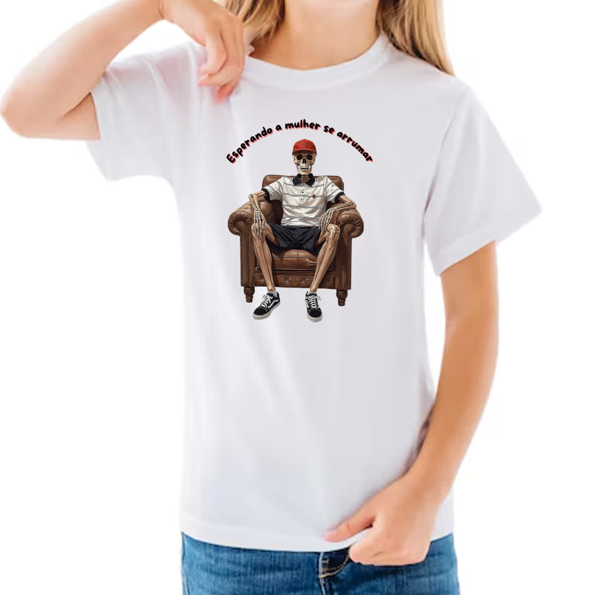 Camiseta Infanto Juvenil Esperando a mulher se arrumar