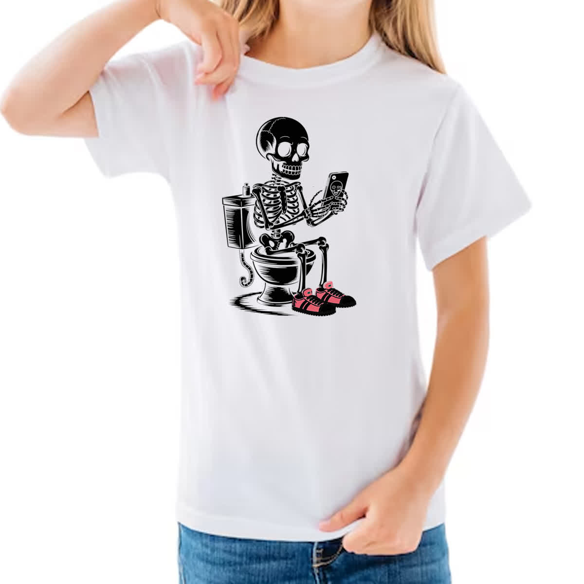 Camiseta Infanto Juvenil Esqueleto na Sala de Forca