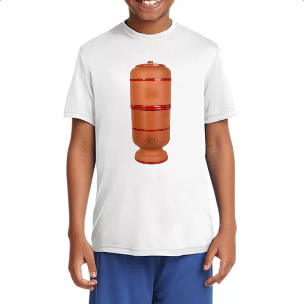 – Nossas camisetas são produzidas com tecido de 100% Poliéster.