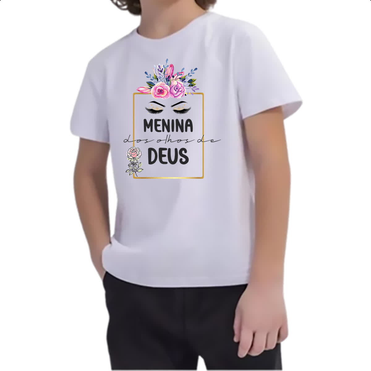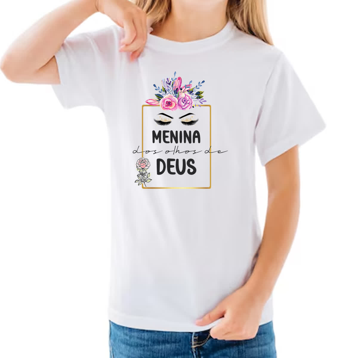 Camiseta Infanto Juvenil Gospel Menina olhos Deus