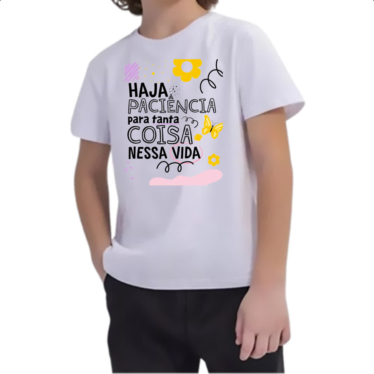 Camiseta Infanto Juvenil Haja paciencia para tanta coisa