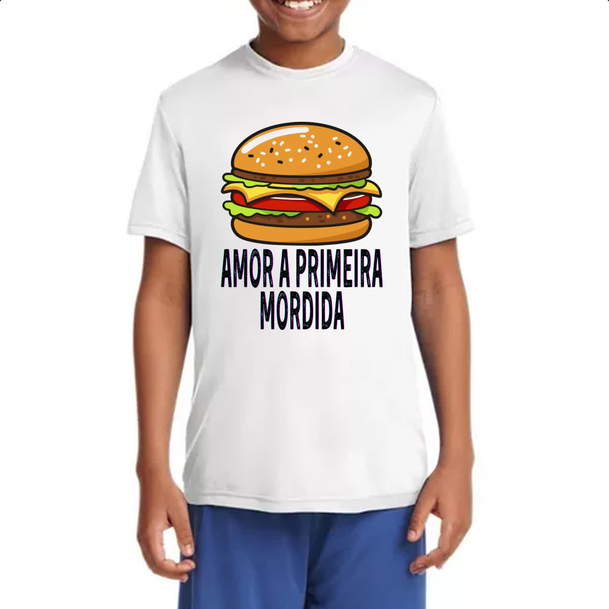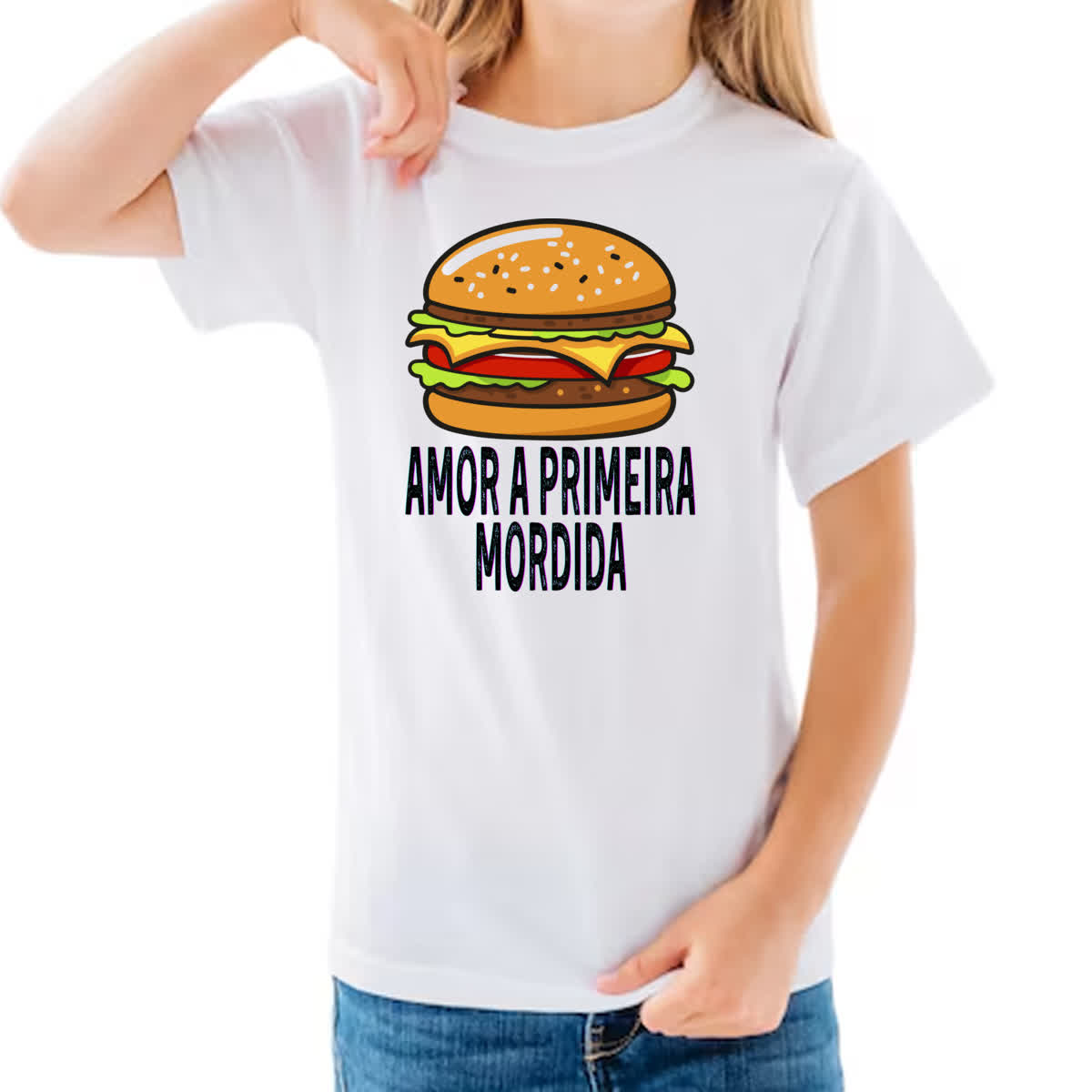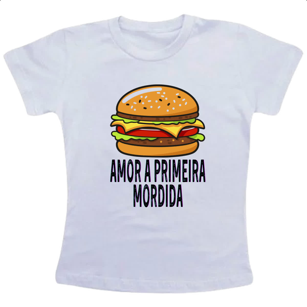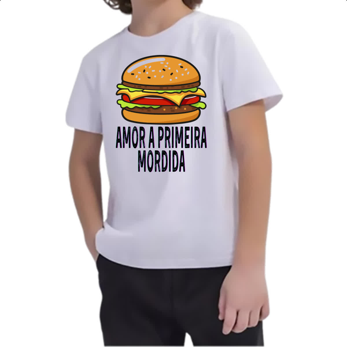Camiseta Infanto Juvenil Hamburguer amor a primeira mordida