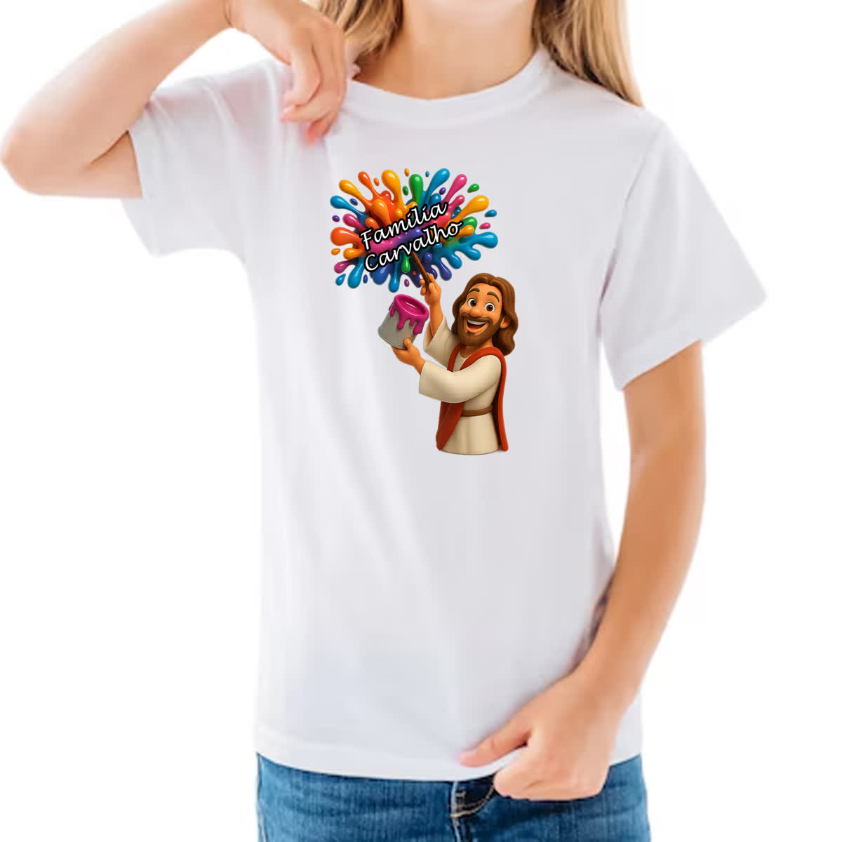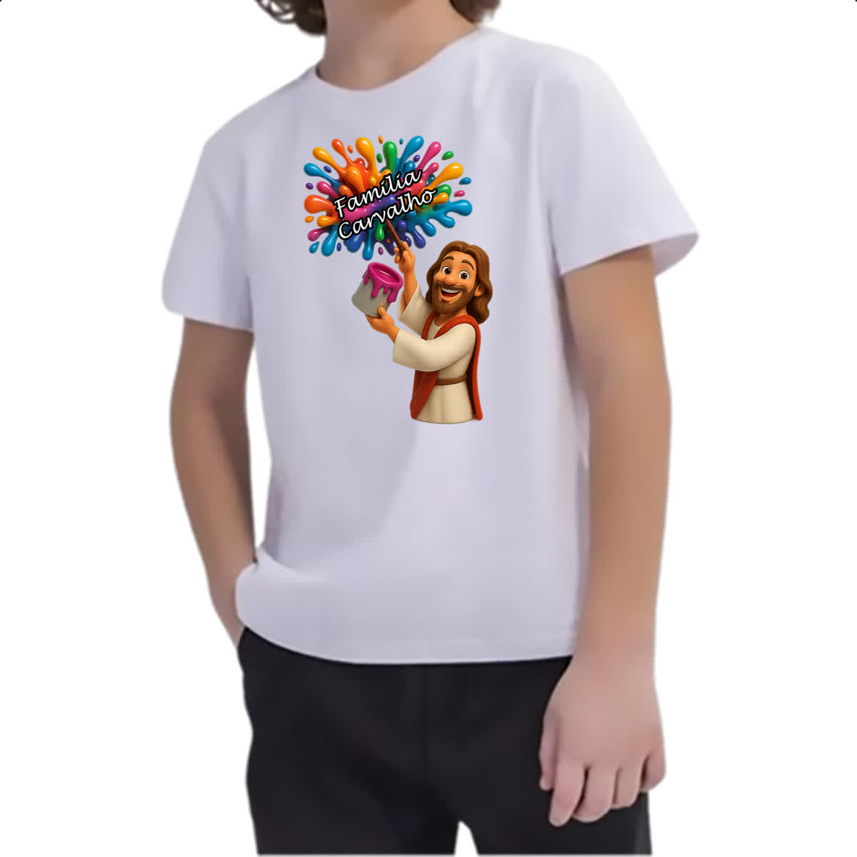 Camiseta Infanto Juvenil Jesus Escrevendo Familia Carvalho