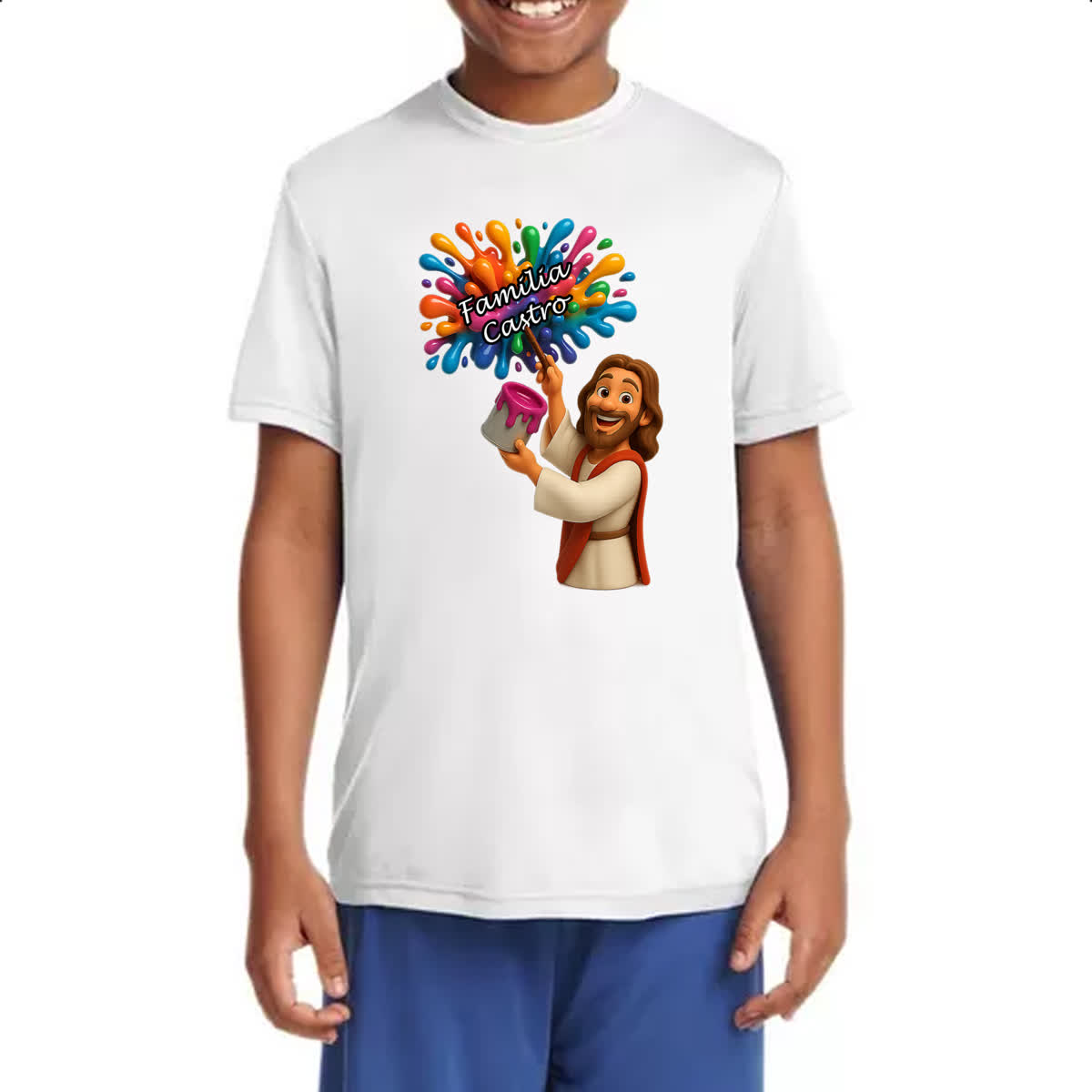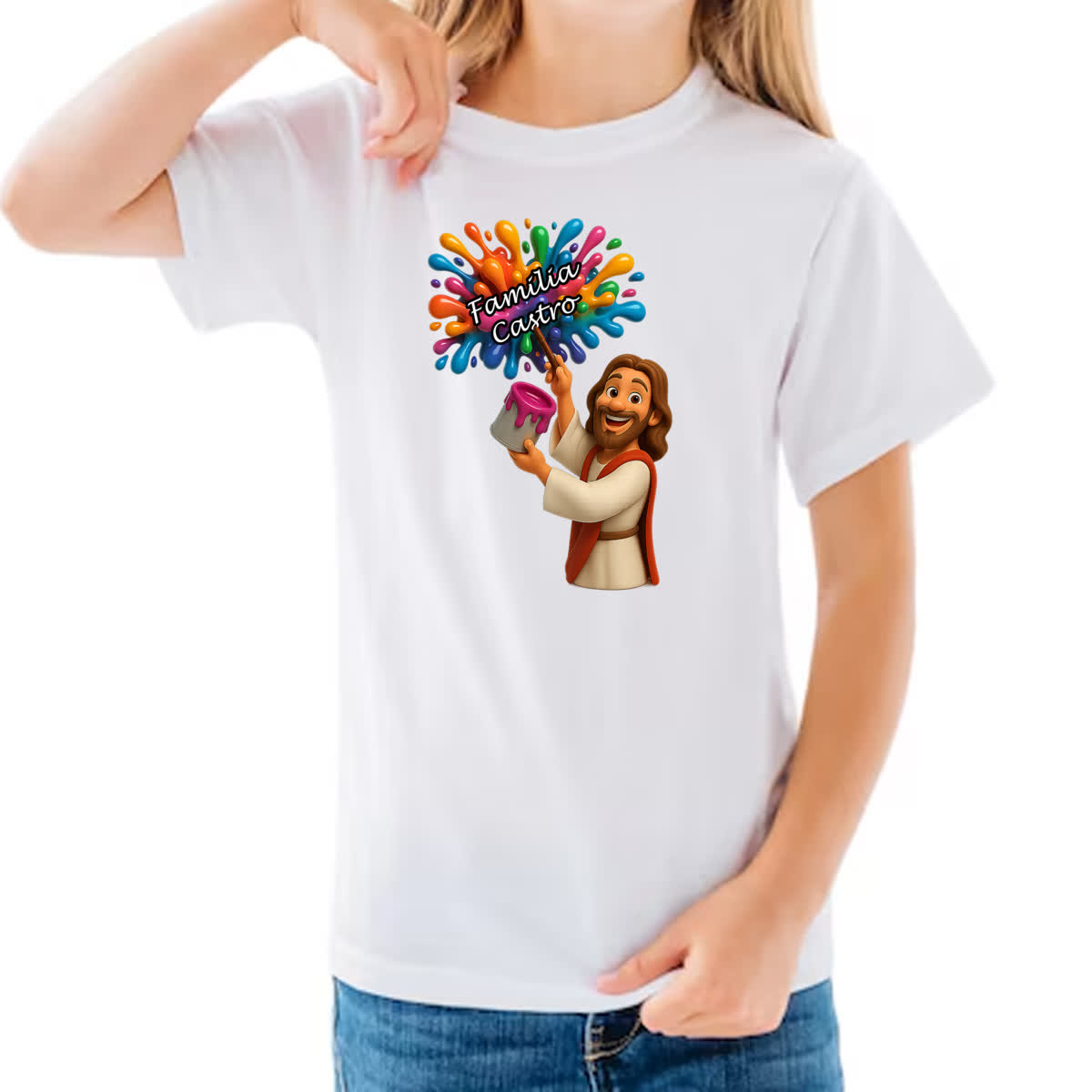Camiseta Infanto Juvenil Jesus Escrevendo Familia Castro