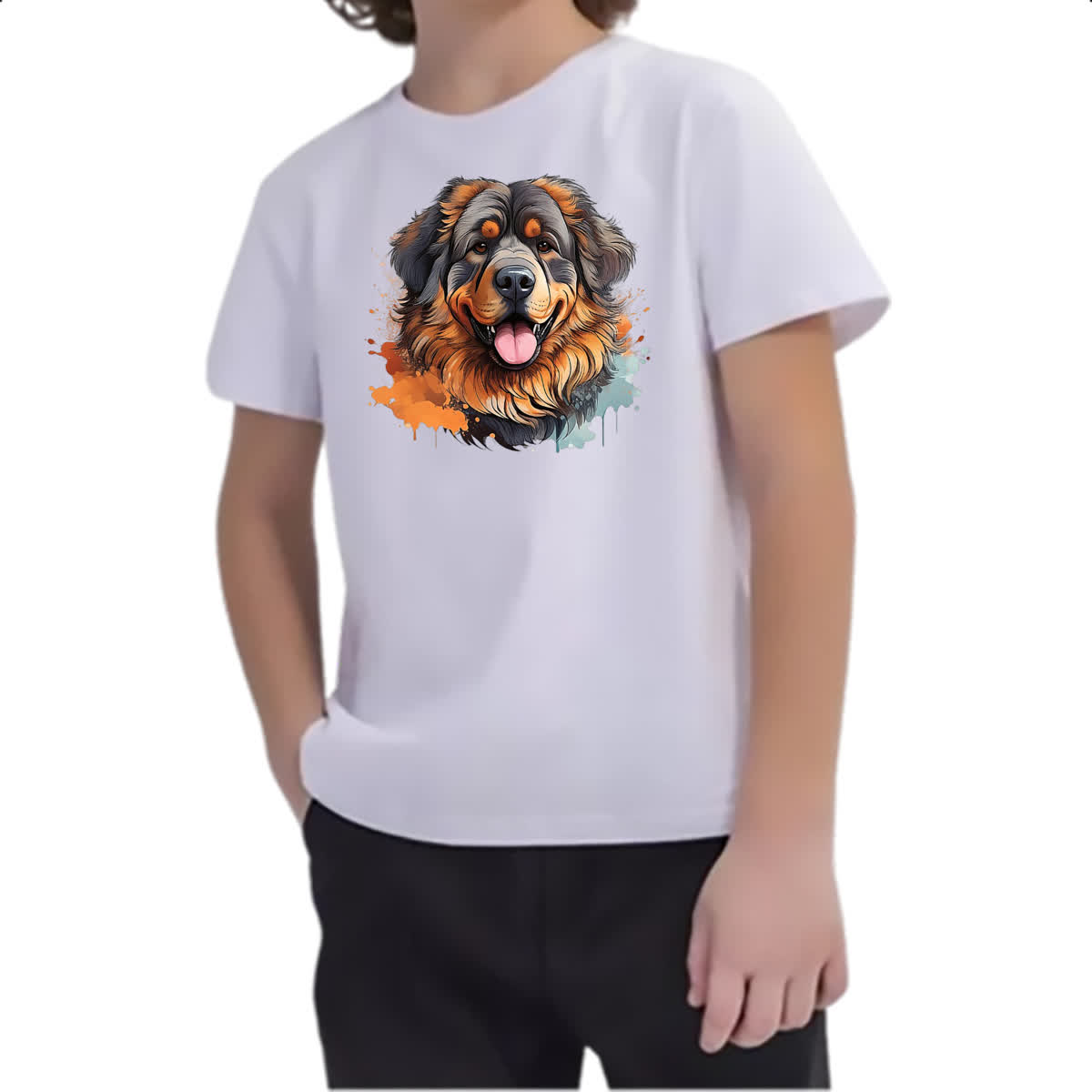 Camiseta Infanto Juvenil Mastim tibetano Watercolor Arte