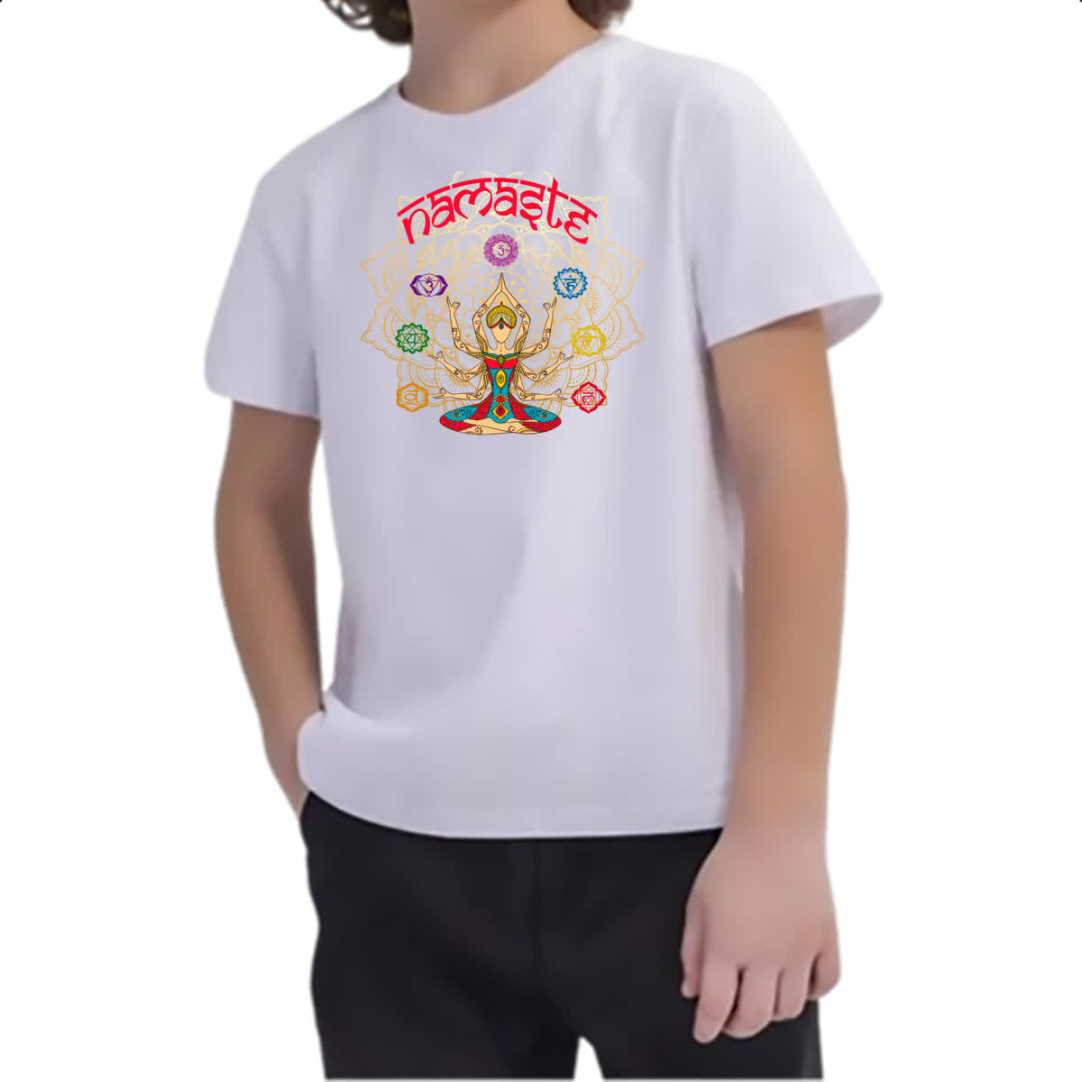 Camiseta Infanto Juvenil Namaste Deusa Kali Chakras