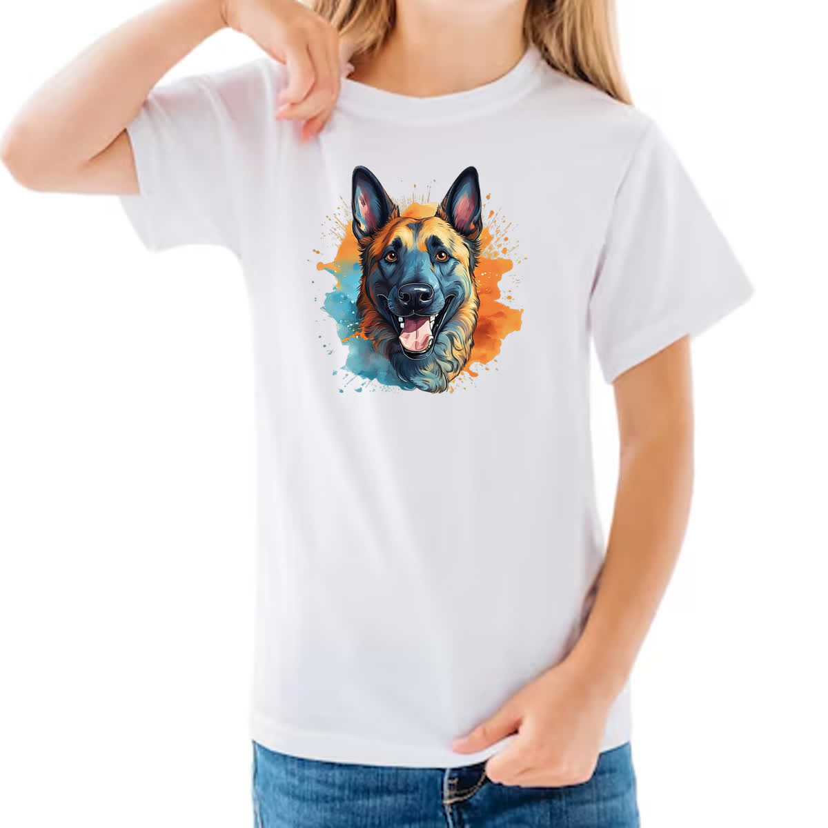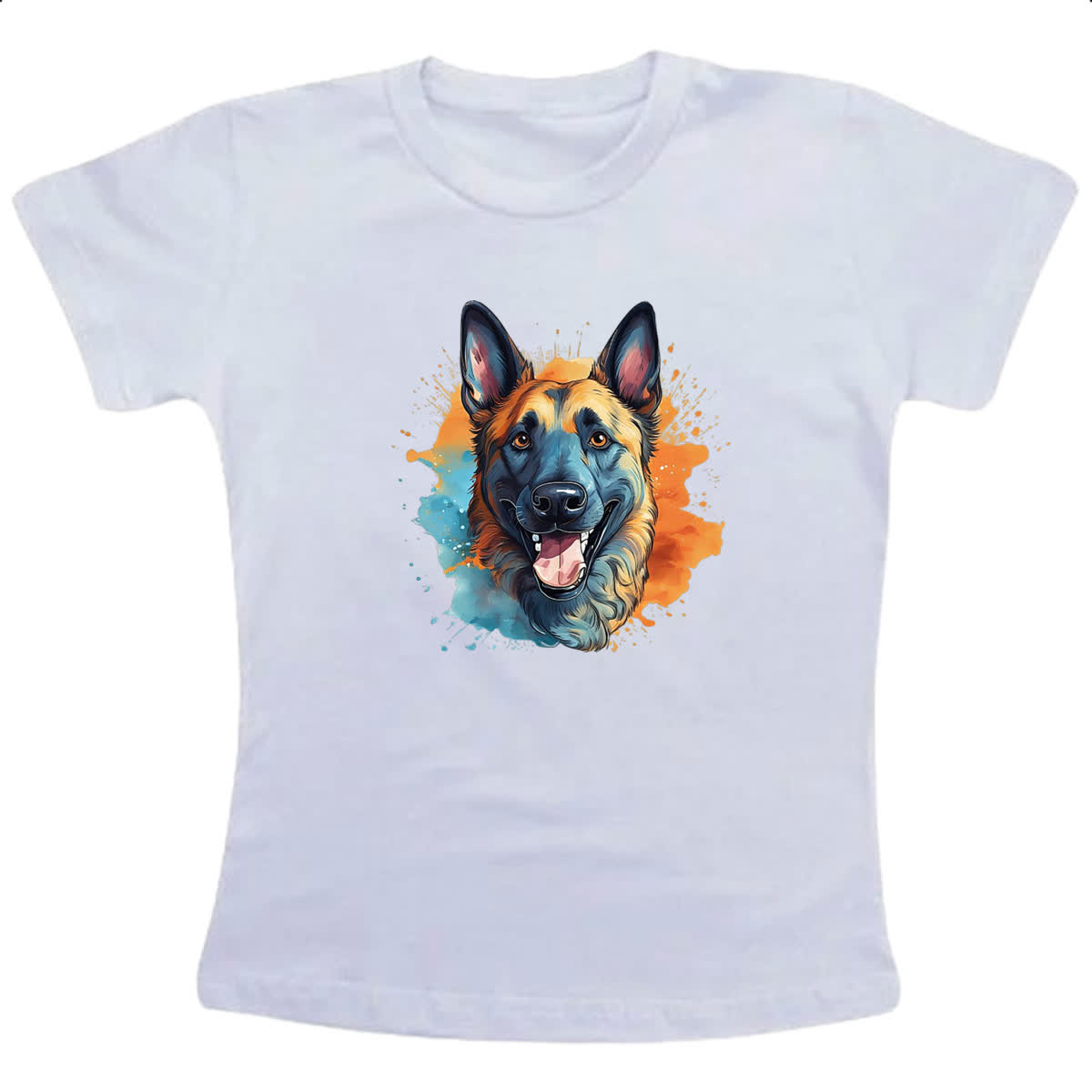 Camiseta Infanto Juvenil Pastor belga Watercolor Arte