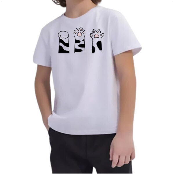 Camiseta Infanto Juvenil Pedra Papel Tesoura gato malhado