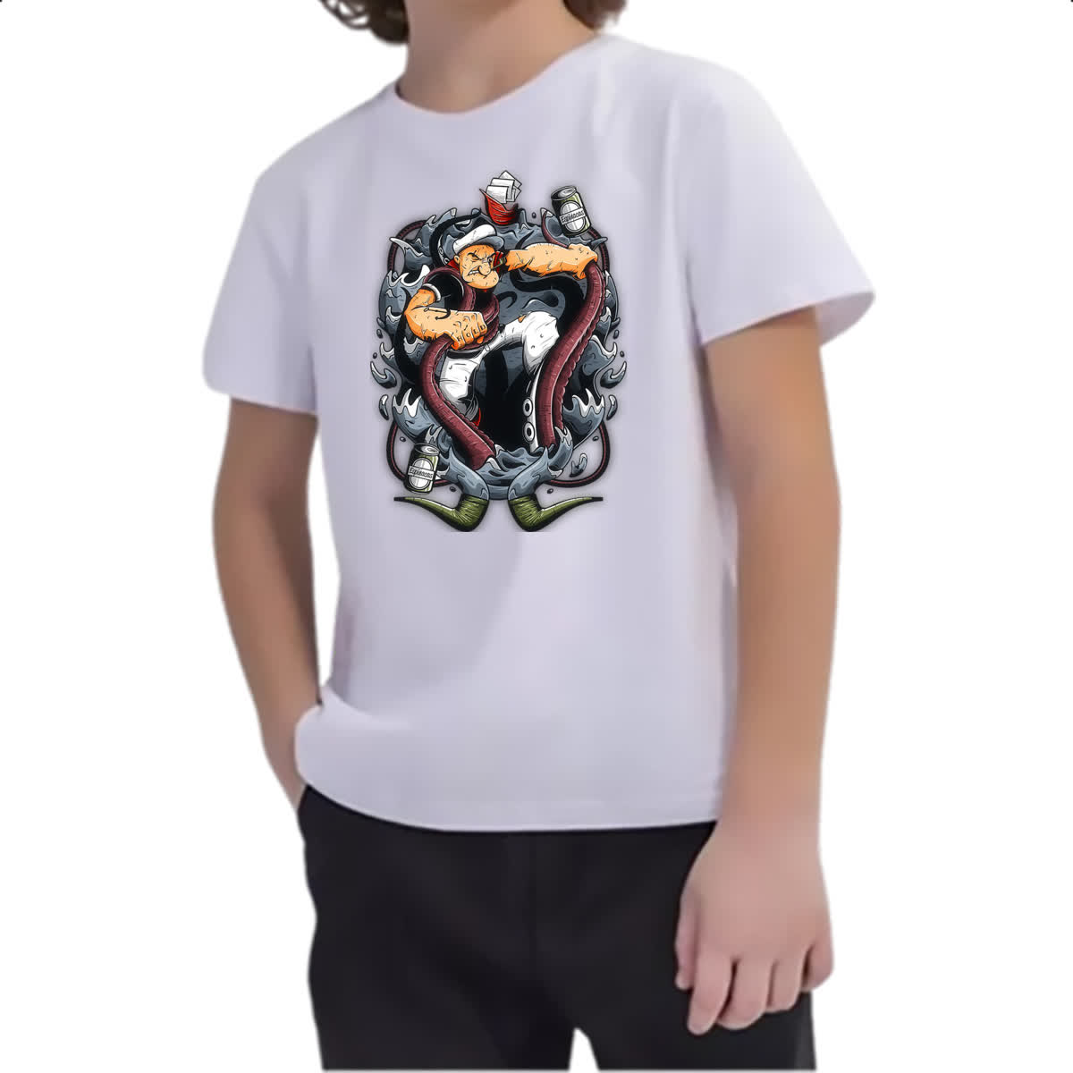 Camiseta Infanto Juvenil Popeye vs Kraken