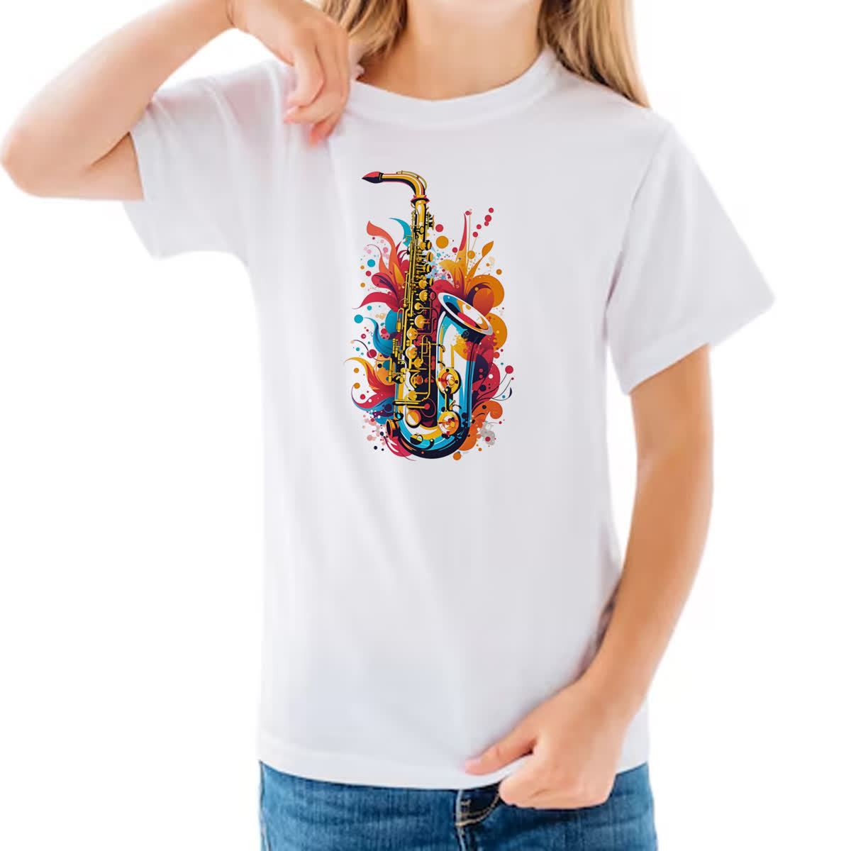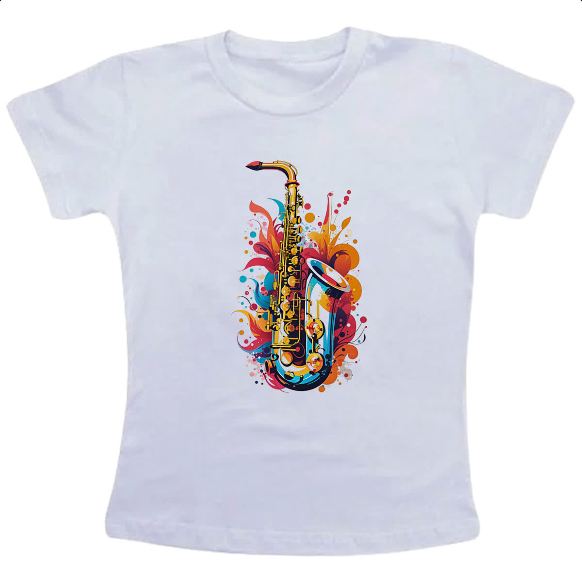 Camiseta Infanto Juvenil Saxofone colorful arte design