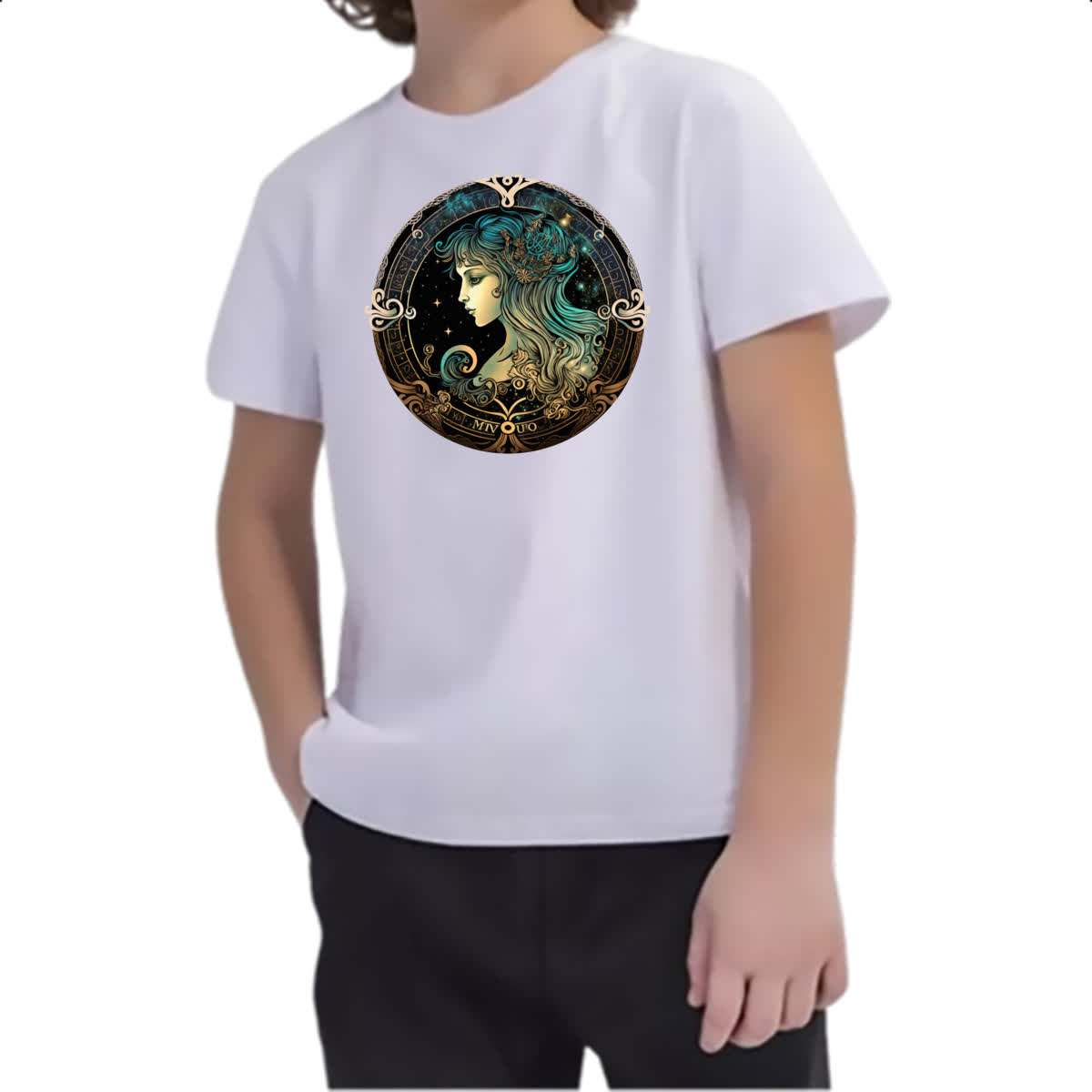 Camiseta Infanto Juvenil Signo de Virgem placa de luxo
