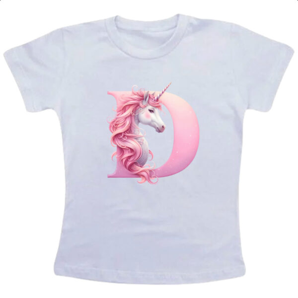 Camiseta Infanto Juvenil Unicornio Alfabeto Letra D