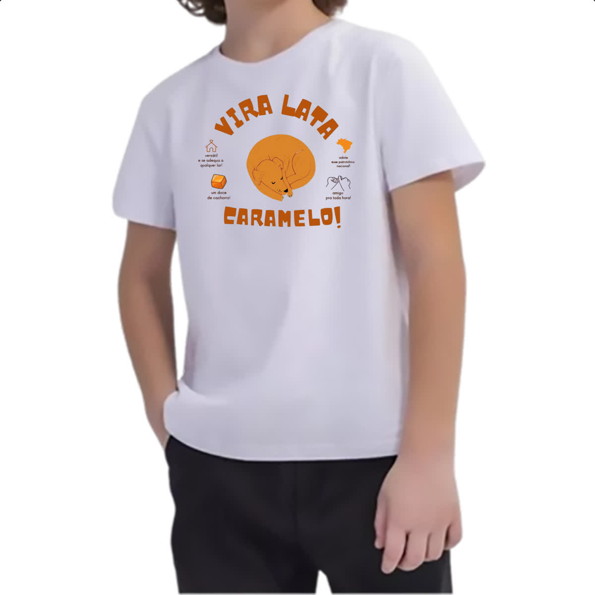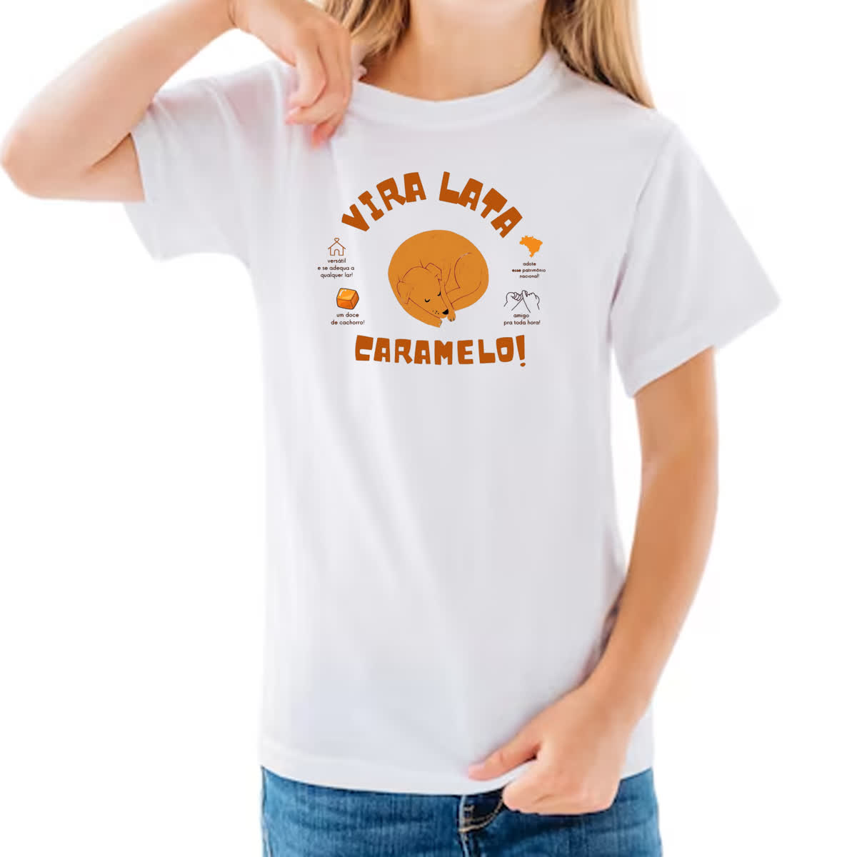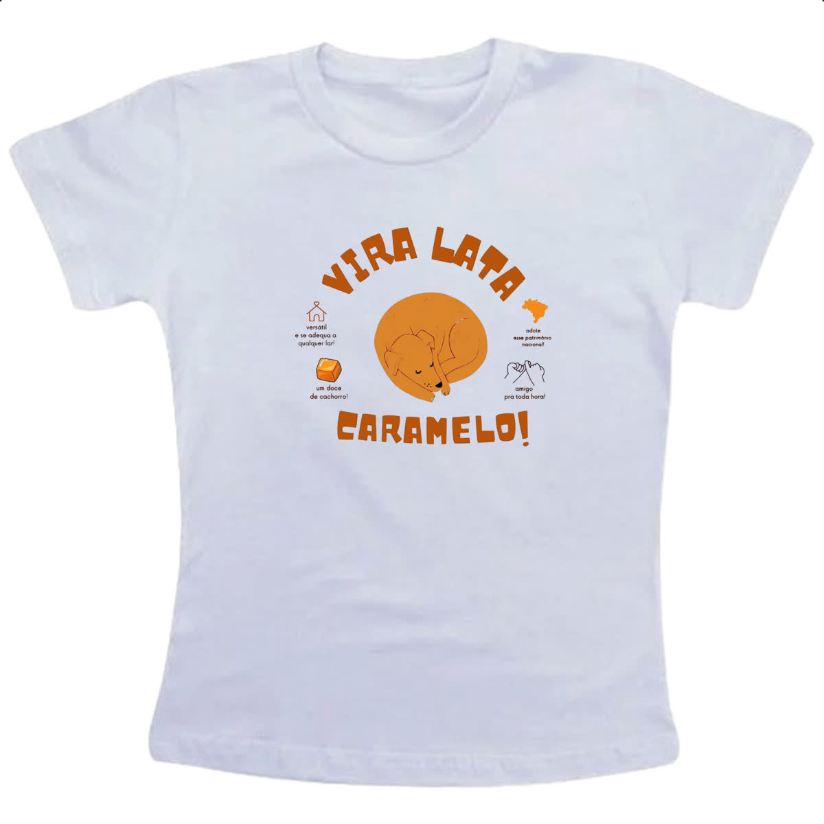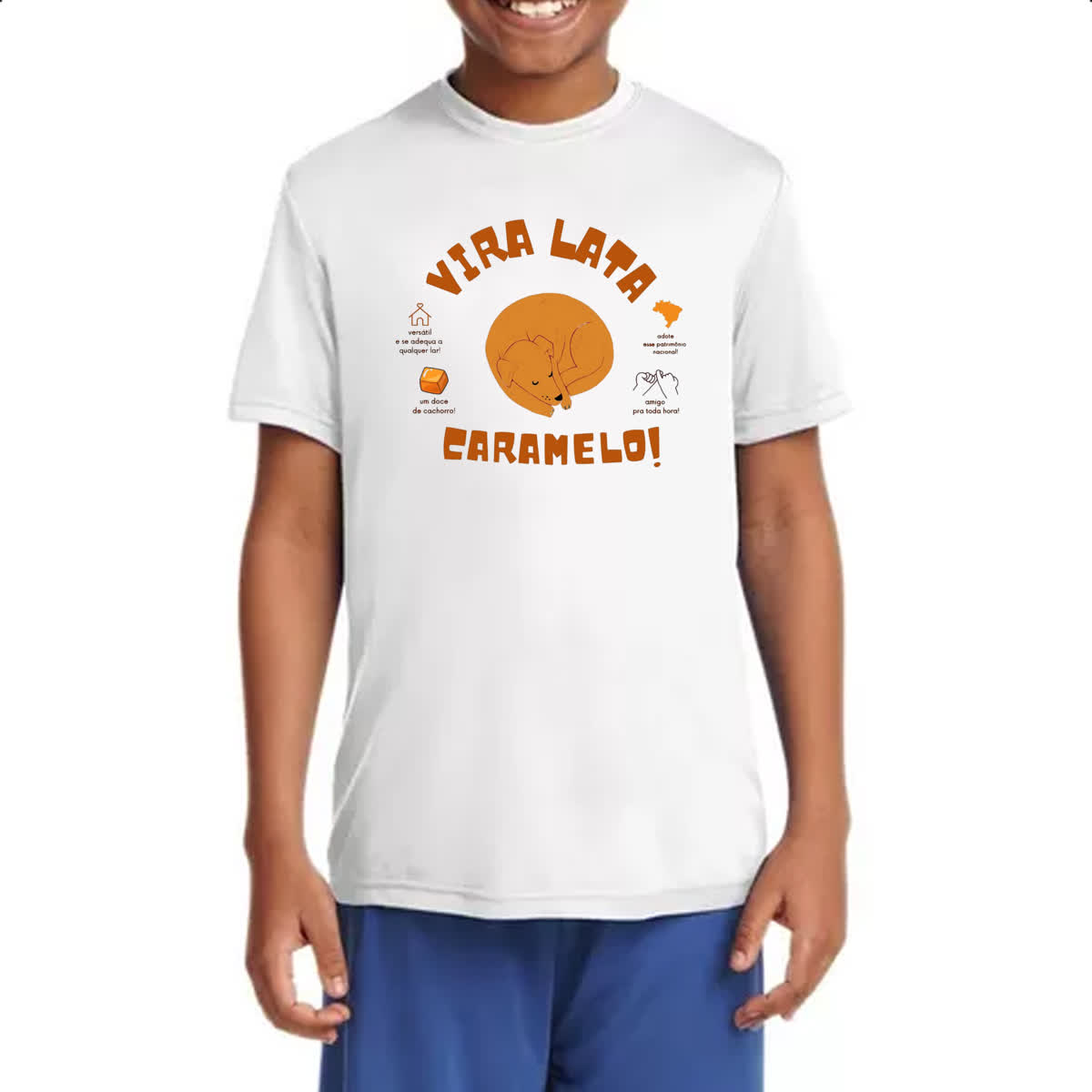 – Nossas camisetas são produzidas com tecido de 100% Poliéster.