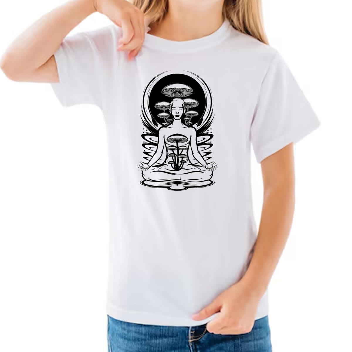 Camiseta Infanto Juvenil Yoga Cogumelos