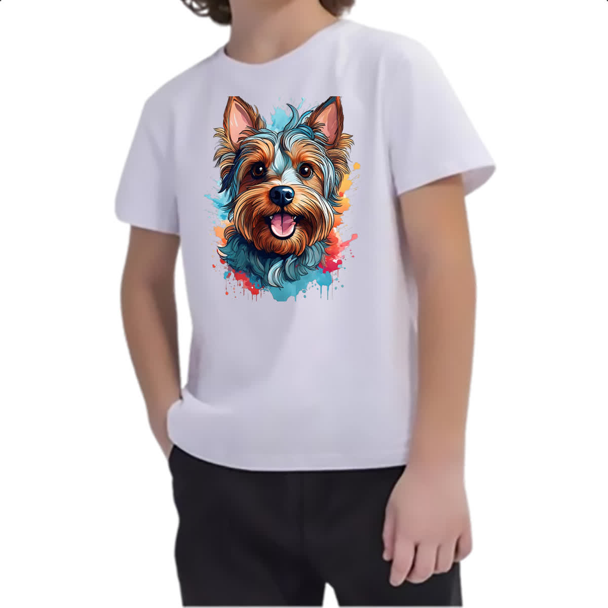 Camiseta Infanto Juvenil Yorkshire Terrier Watercolor Arte