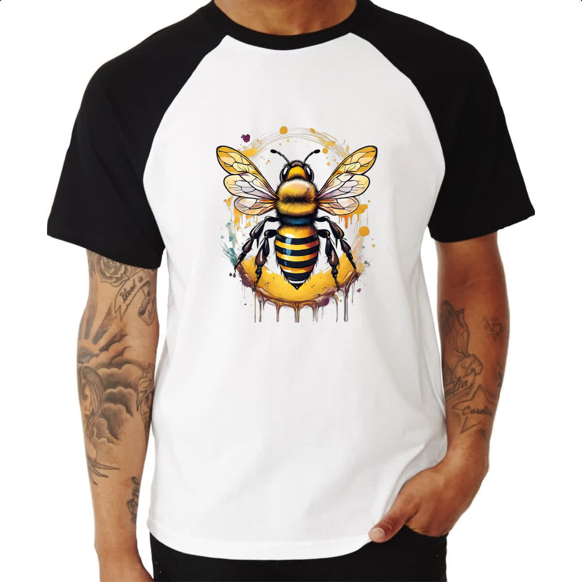 Camiseta Raglan Abelha Watercolor Arte