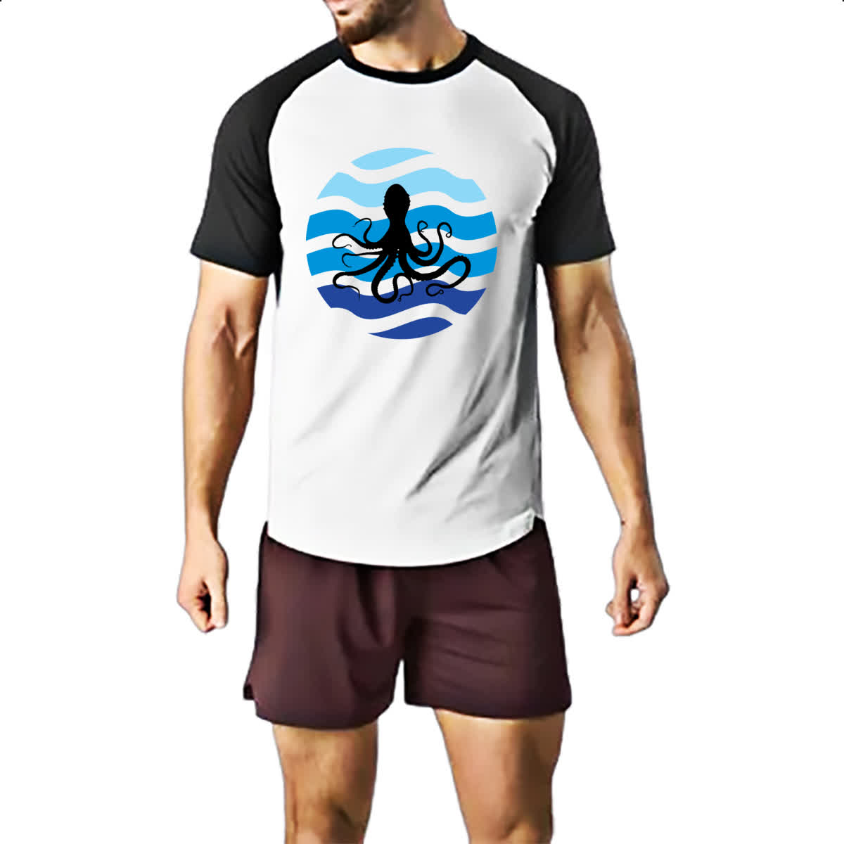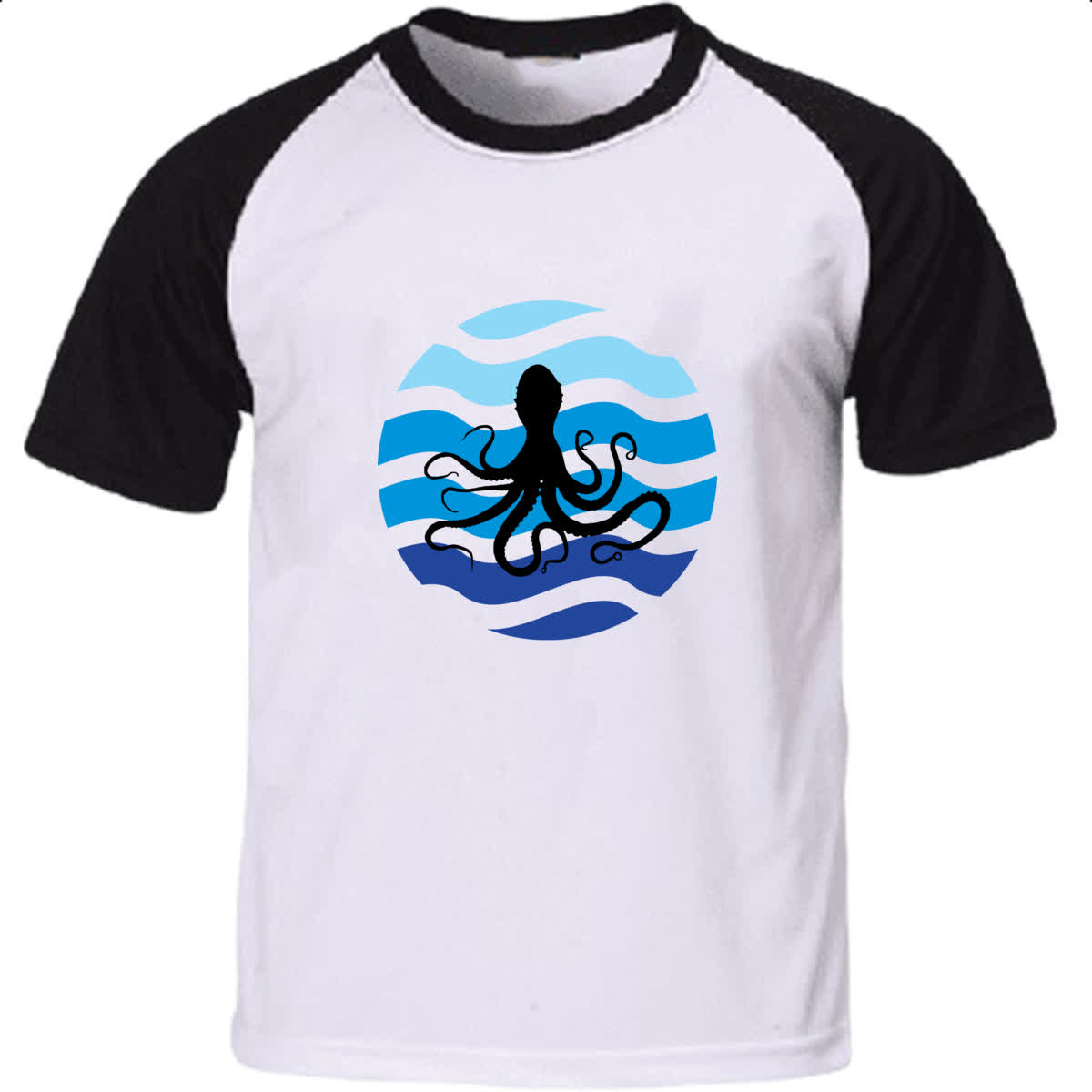 Camiseta Raglan Animais marinhos polvo silhueta sunset