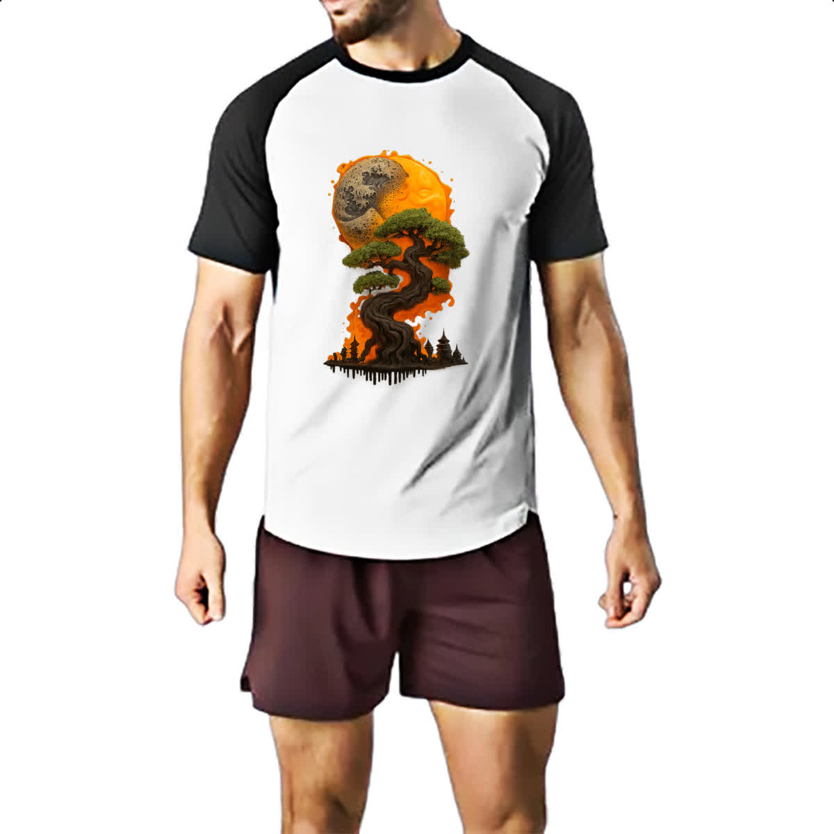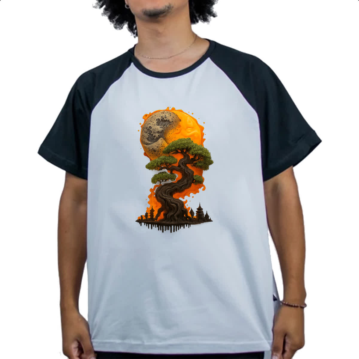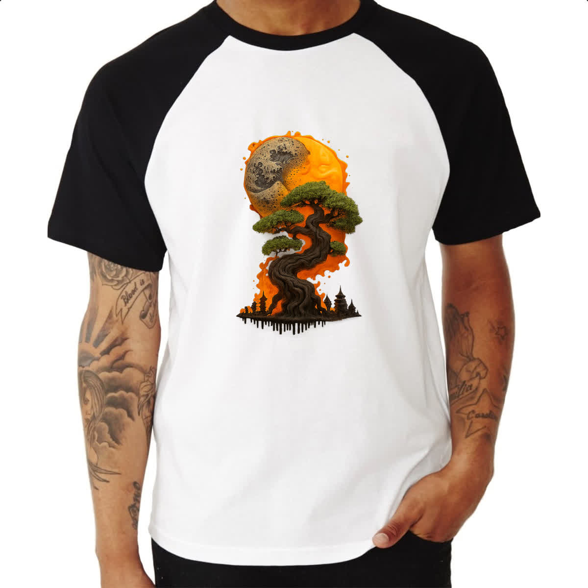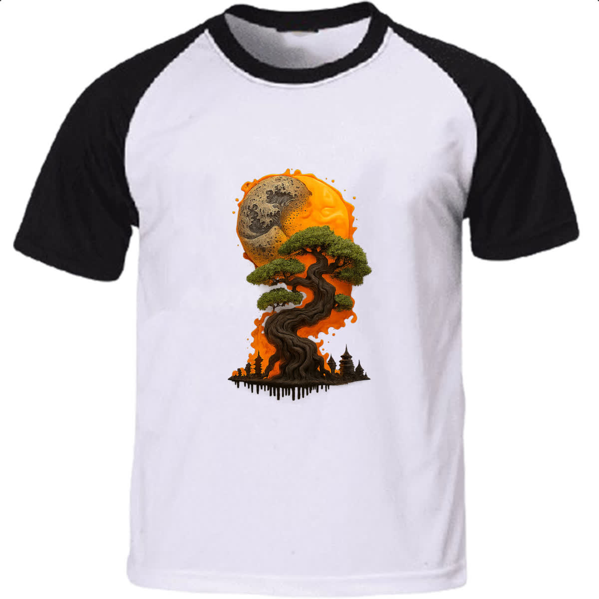 Camiseta Raglan Bonzai sunset fire art