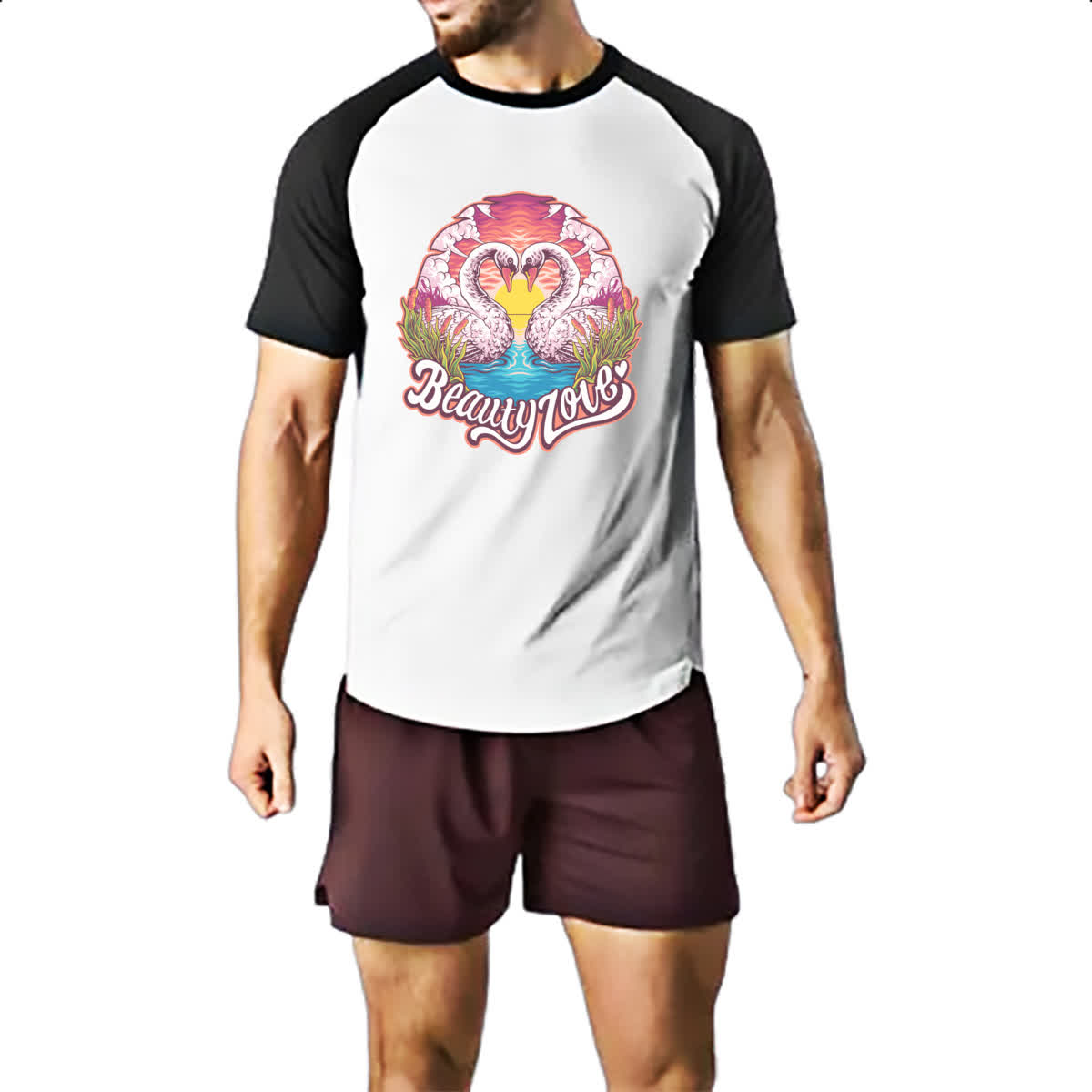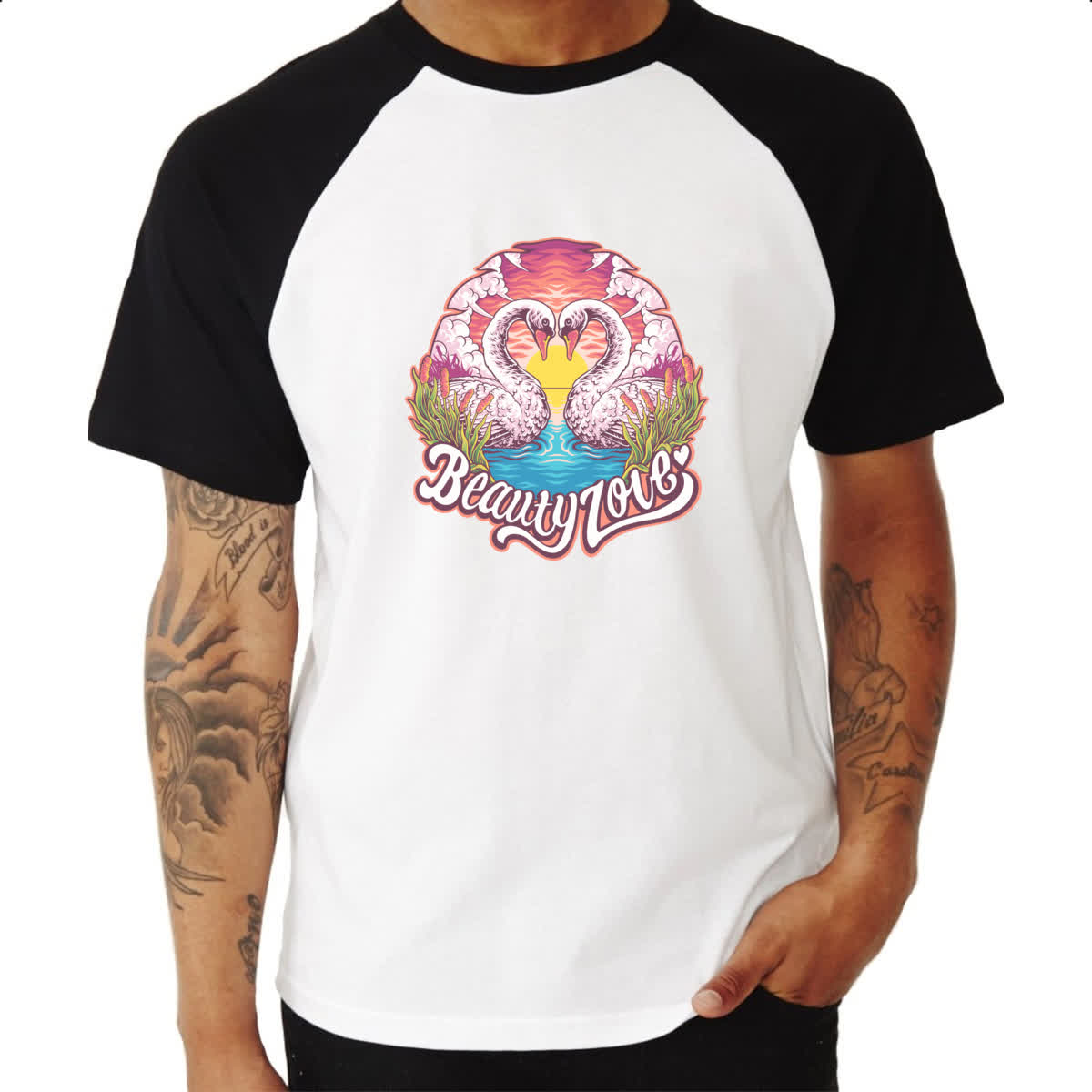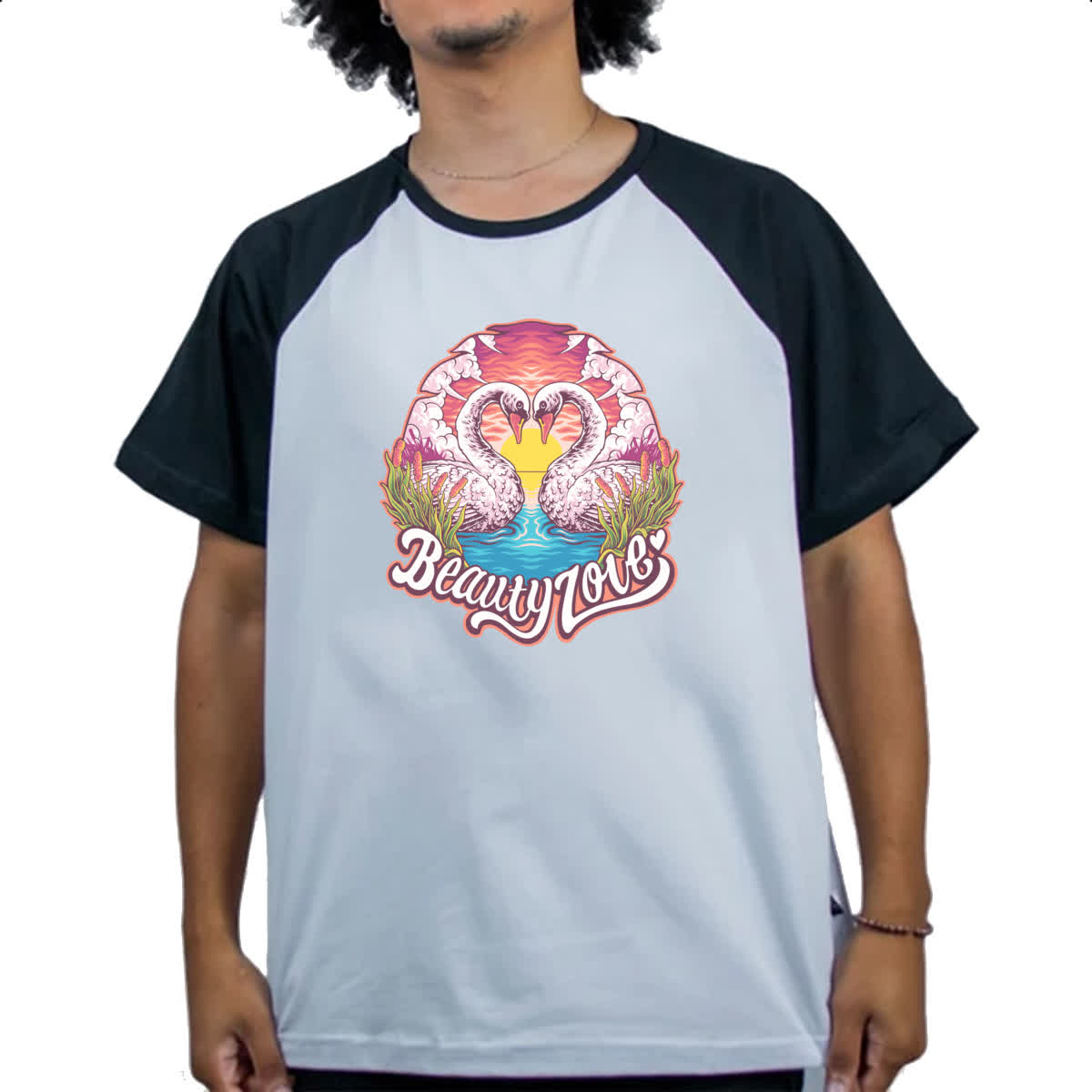 Camiseta Raglan Cisne coracao Beauty Love