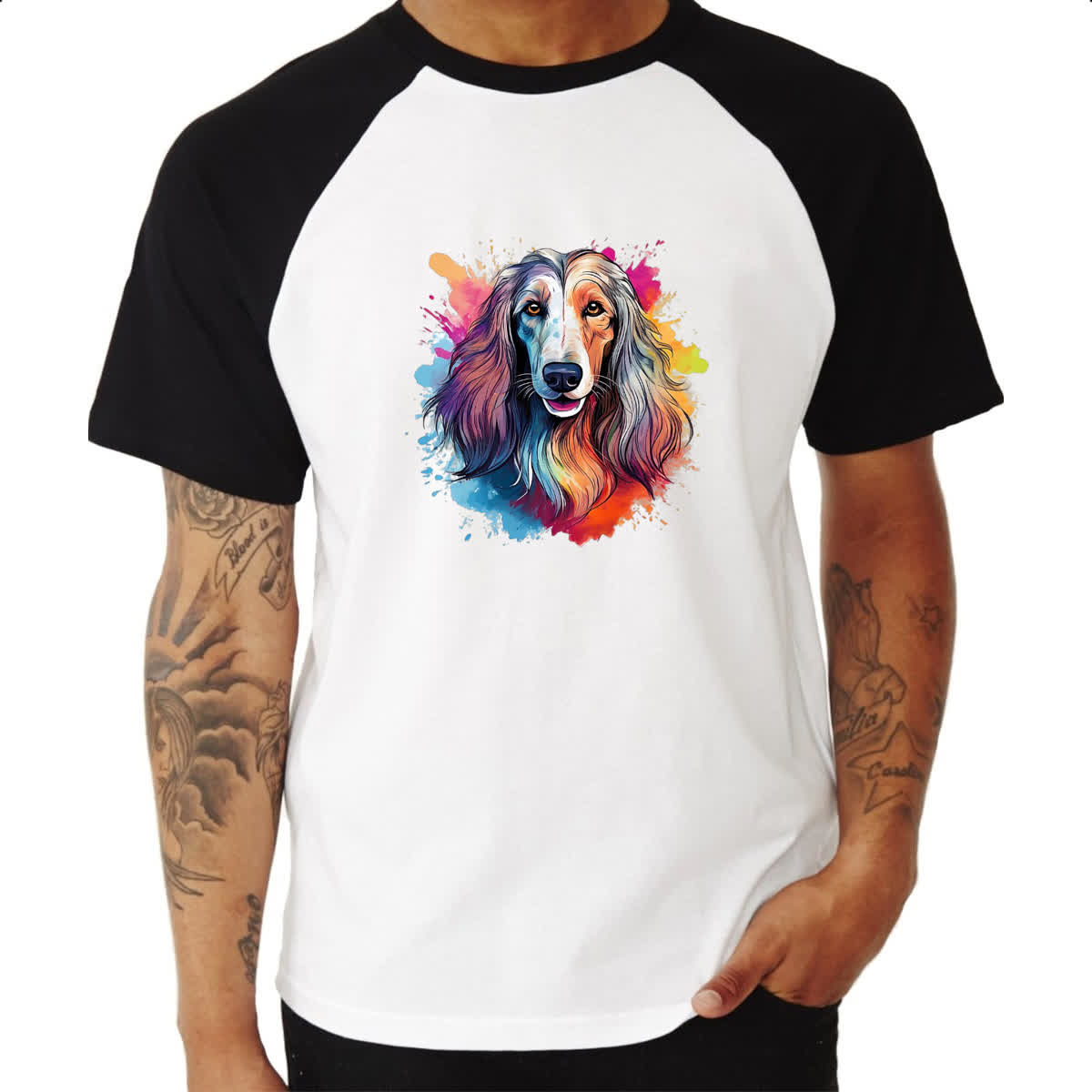 Camiseta Raglan Galgo afegao Watercolor Arte